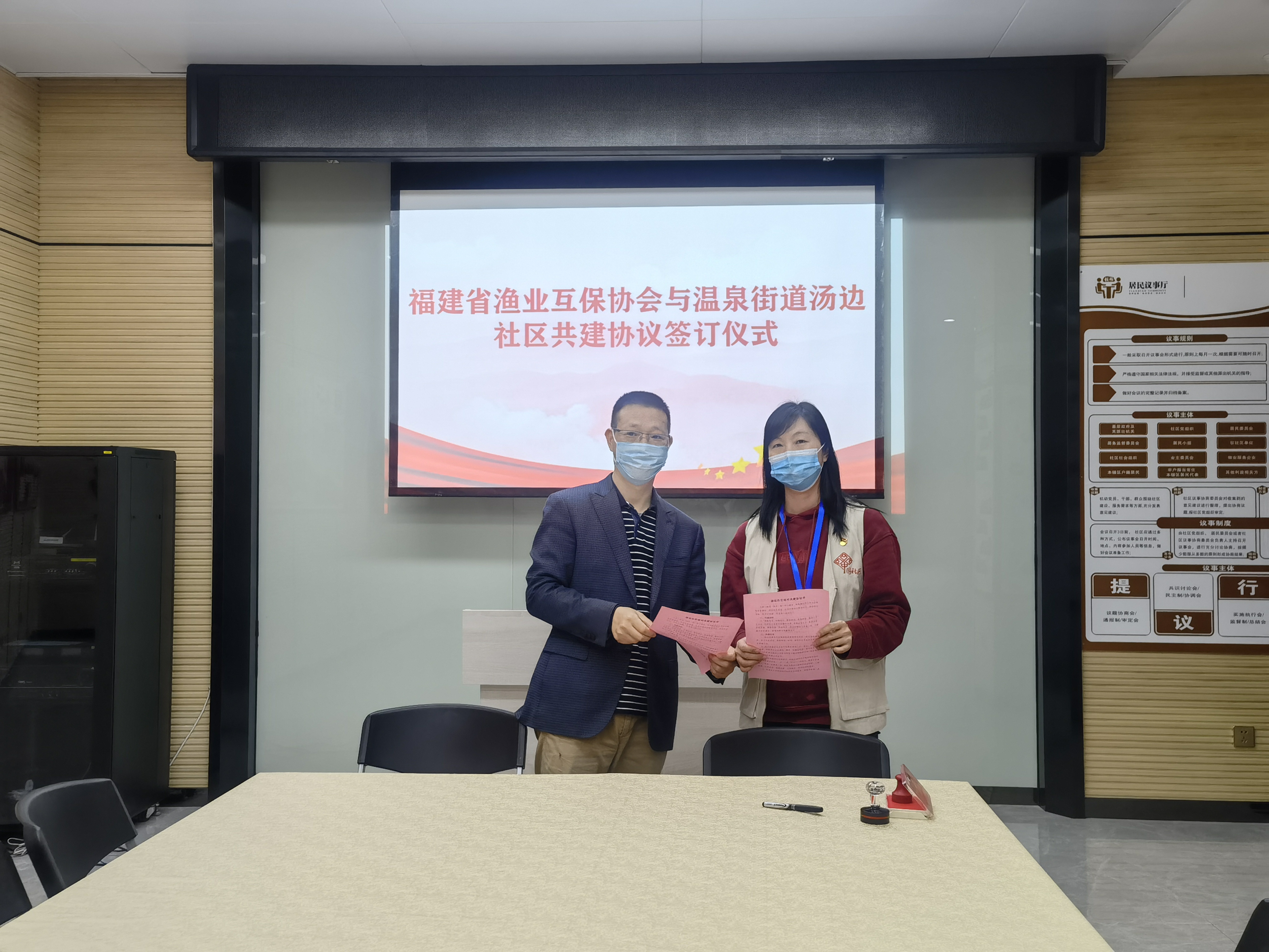 为深入贯彻学习党的十九大报告精神,强化基层党组织建设, 2月8日,协会党支部书记兼副理事长王以诚前往温泉街道汤边社区,与社区主任签订共建协议。协议约定今后双方将本着“资源共享、优势互补”的共建原则,通过共建活动平台、开展党建活动、帮扶困难群众等方式,有效加强双方党组织建设,激发基层党建活力,实现双方共同发展。