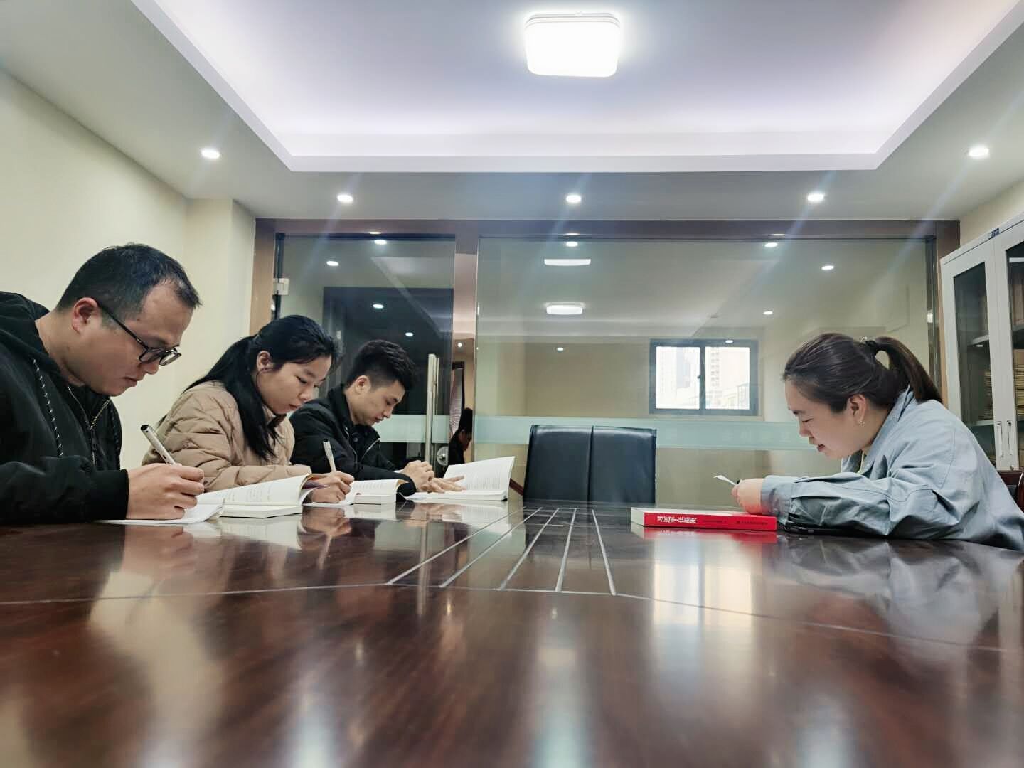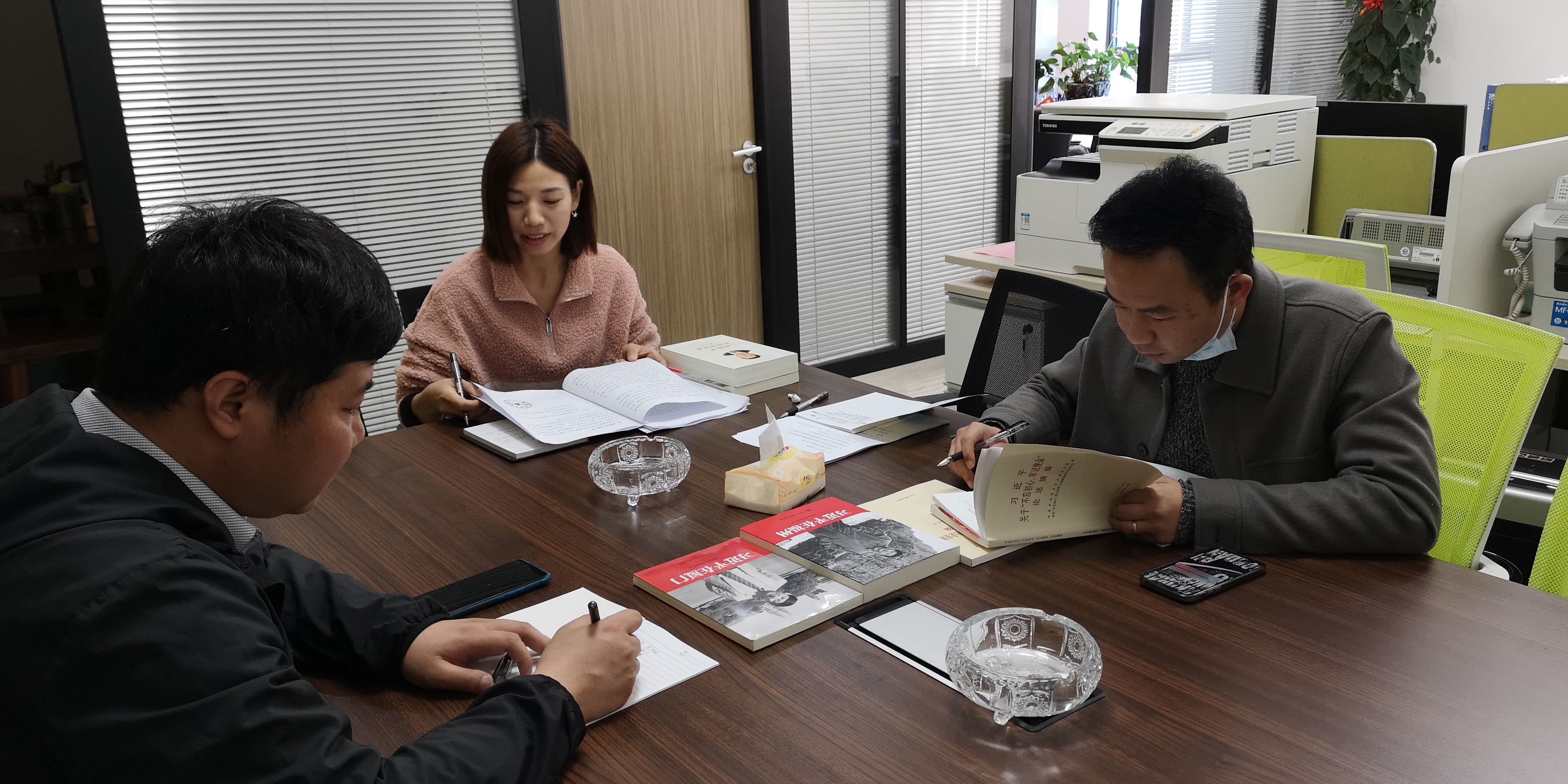 ▲3月25日,福鼎市办事处组织全体员工集中学习党史内容。