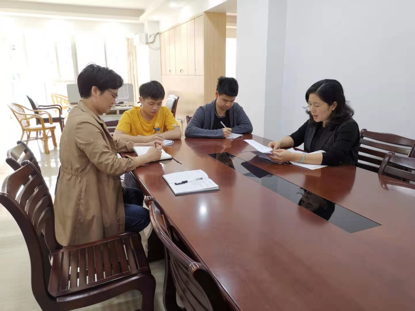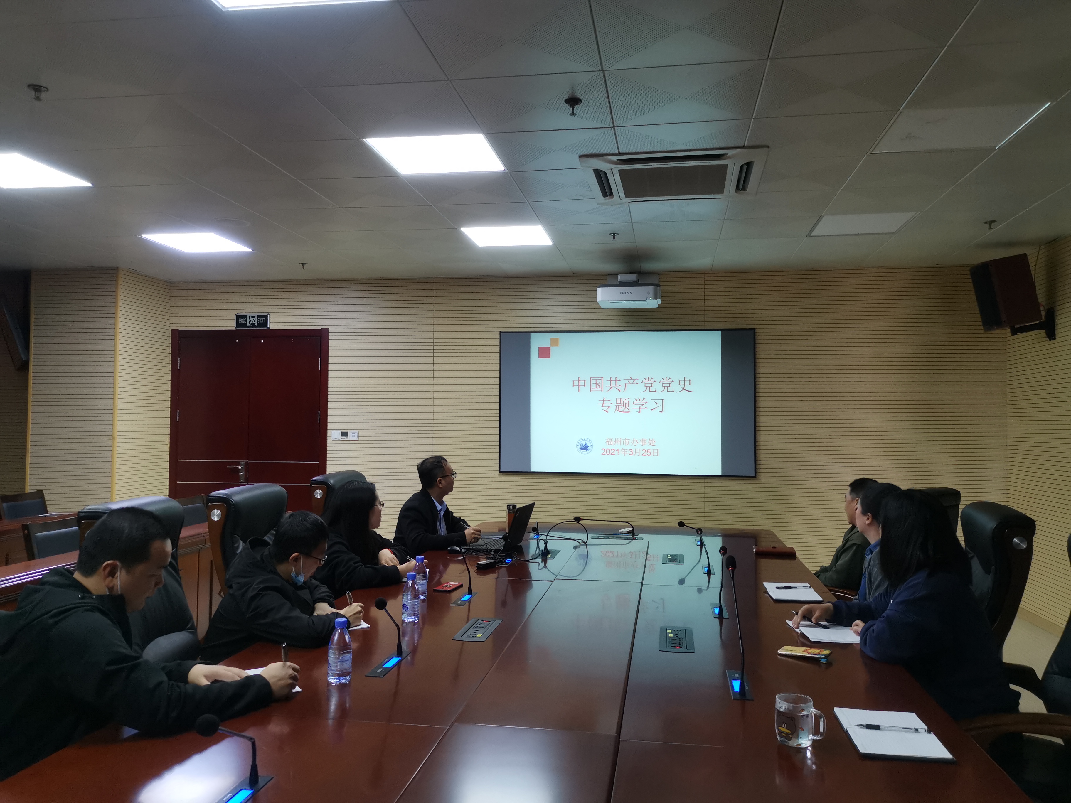 ▲3月25日,福州市办事处组织召开党史专题学习会,针对“古田会议”党史视频进行学习和总结讨论。