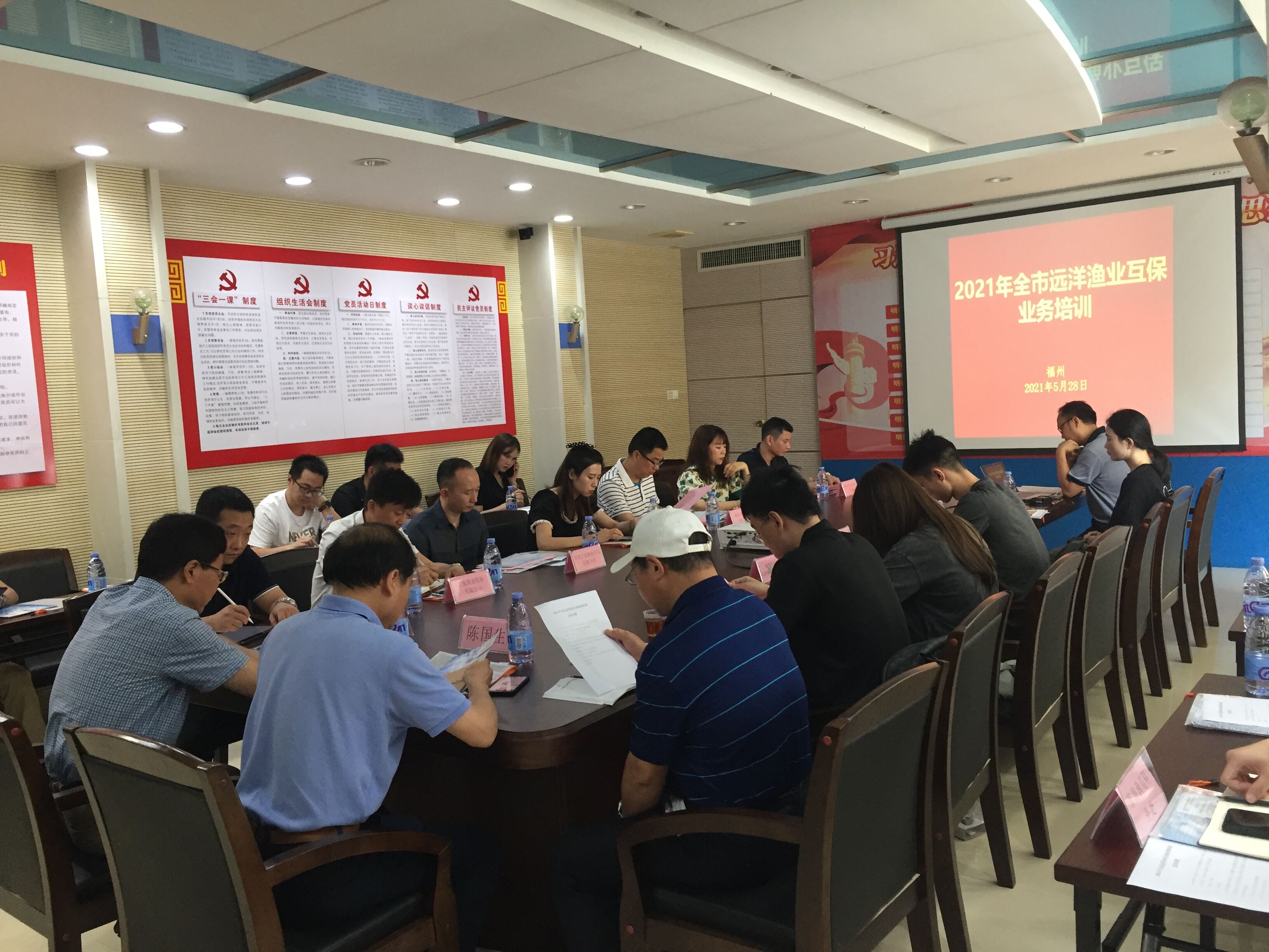 5月28日,在福州市远洋渔业互保业务培训会上,福州市办事处人员为前来参会的20余名福州市各远洋企业中高层管理人员带来了一场别开生面的党史故事宣讲会。