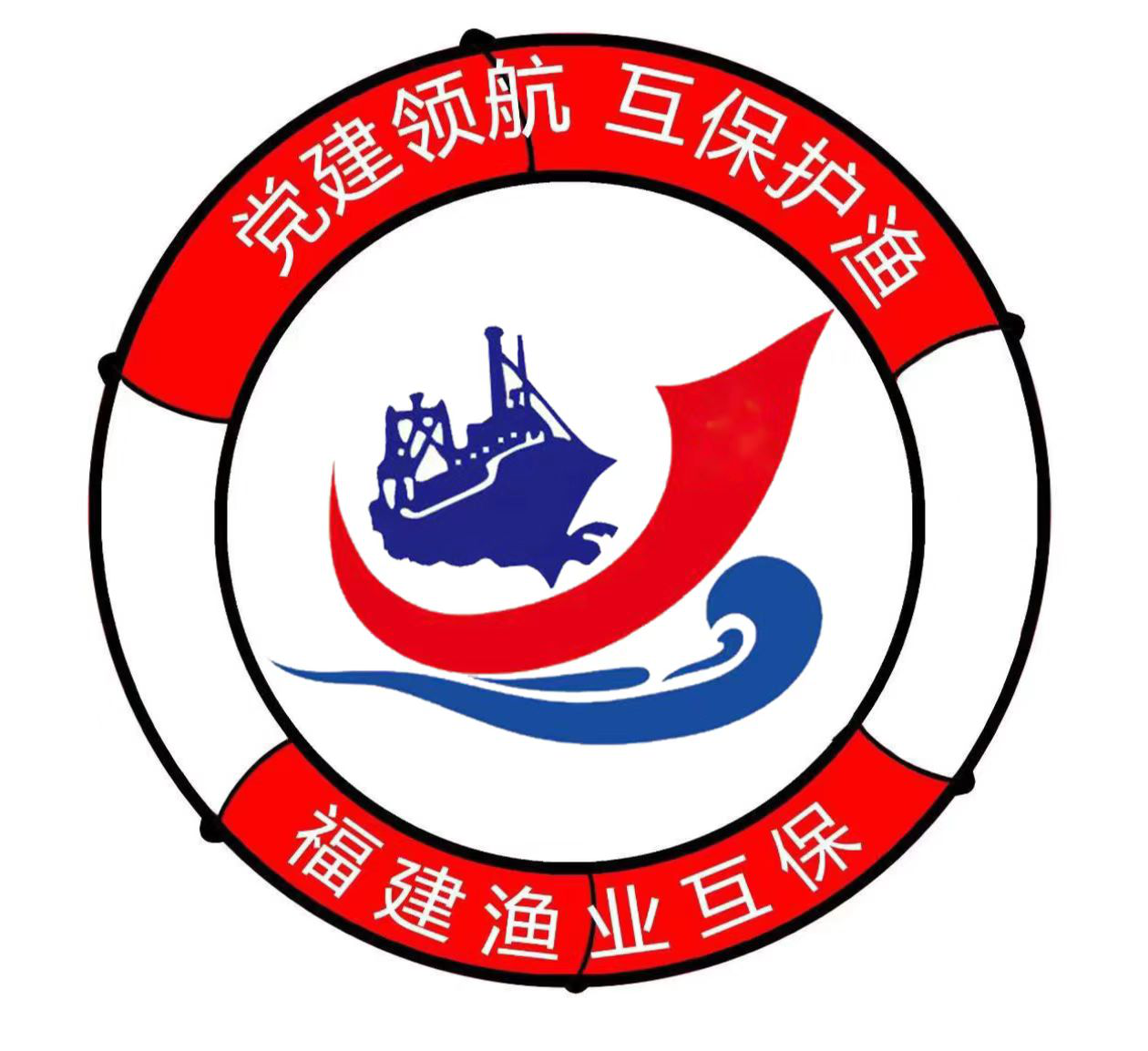 外围的救生圈体现了渔业互保协会秉承 “互助共济、服务渔业”的宗旨中间的红船代表着红色革命精神之也代表着立党为公、忠诚为民的奉献精神,与协会互助共济,服务渔业的宗旨不谋而合。渔船在党的领导下,在海中坚定航行,体现互保与渔民风雨同舟的正能量形象。推动海洋渔业事业风清气正、良性发展,以事业发展成果体现党建引领显著成效。