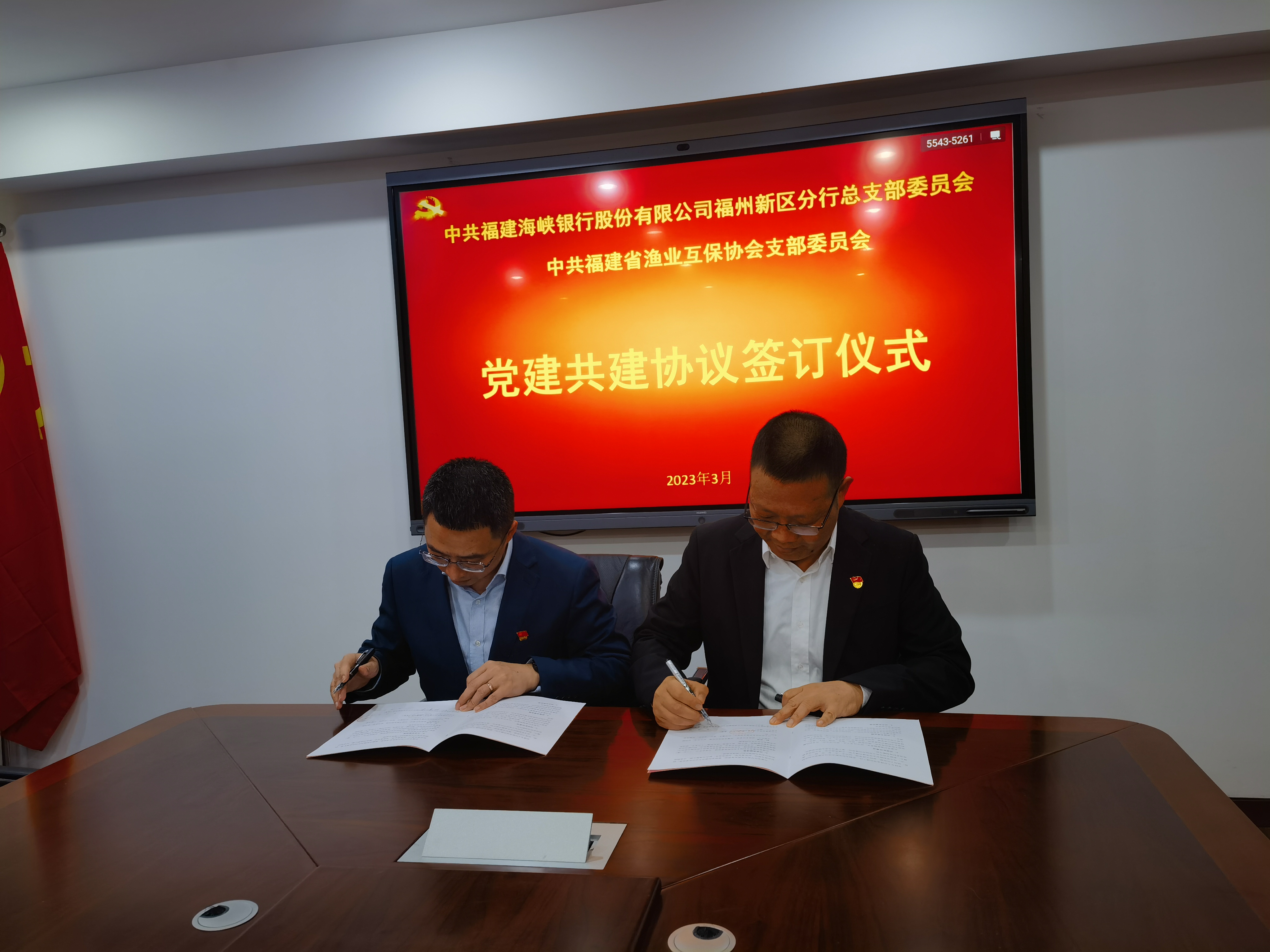 为践行习近平总书记来闽考察时对海洋建设的要求,提升党建实效,3月28日,中共福建省渔业互保协会支部委员会与中共福建海峡银行股份有限公司福州新区分行总支部委员会,共同续签党建共建协议。