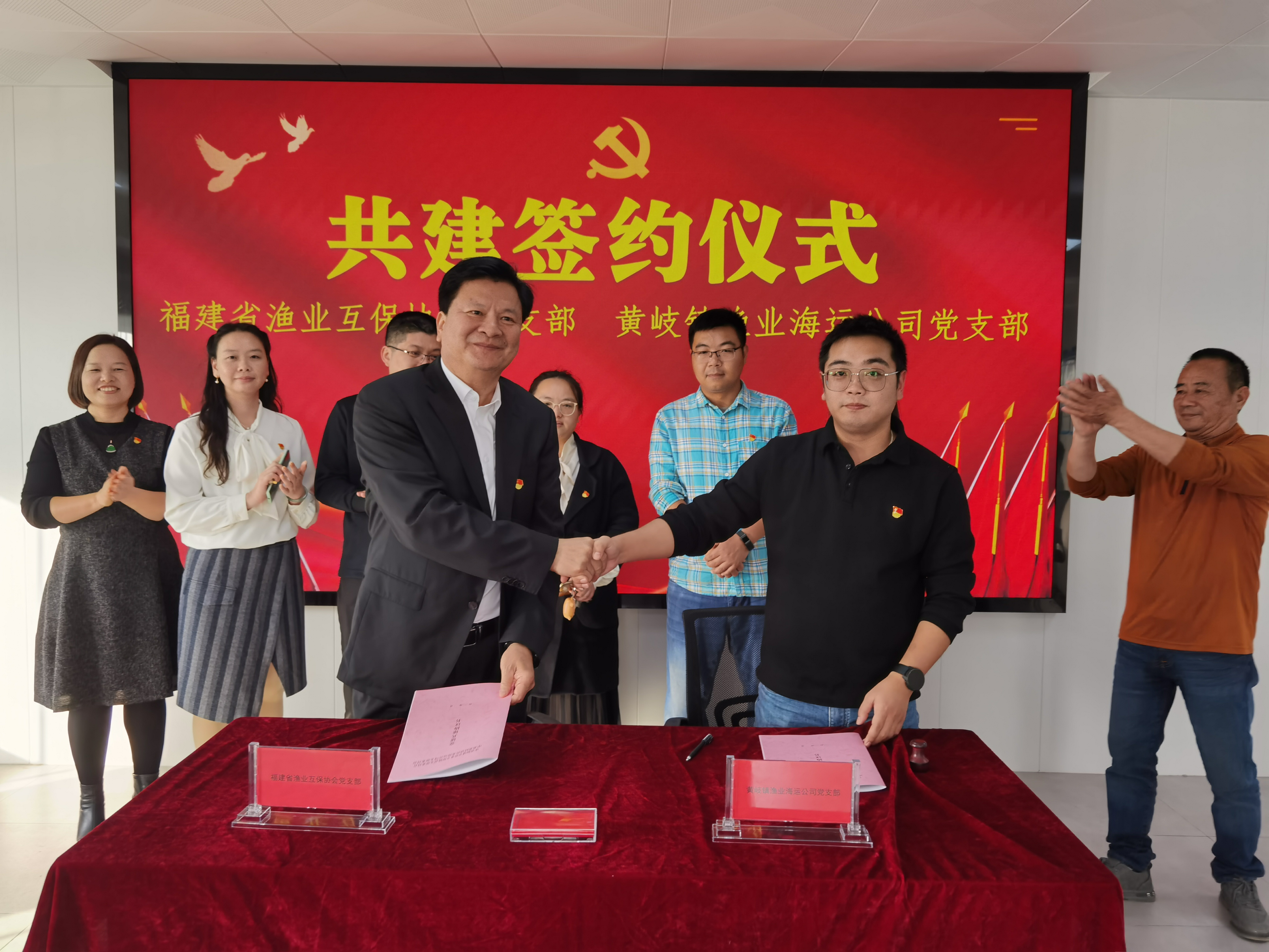 在共建仪式上,双方就组织建设互促、党员干部互促、渔业安全生产共促、船舶安全管理共促、党建载体互促等方面交换了意见与建议。黄金水表示,双方要加强党组织的融合共建,充分发挥基层党组织在服务渔业、服务渔区、服务渔民的战斗堡垒作用,并紧跟渔业安全需求,着力提高渔区渔船渔工保障深度及广度,扩大互保覆盖面,提升互保保障层次。不断整合双方资源,推动渔区共建工作,以实际行动保障渔业生产安全,共同促进渔业产业发展,全面推动渔区乡村振兴。
