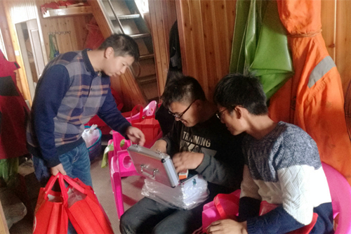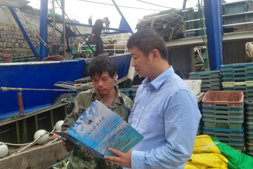 在岸边,几个在码头聊天的村民笑着向工作人员打招呼。工作人员一行跳上甲板,会员林志军船上的渔工从工作人员手中接过应急药箱,喜悦的心情写在脸上。