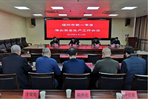3月14日下午,福州市第一季度渔业安全生产工作会议在福州市海洋与渔业局召开,局长林海华、局安委会成员单位负责人、各县(市)区渔业行政主管部门及福建省渔业互保协会福州市办事处共同参会。会议由福州市海洋与渔业局陈明东副局长主持。