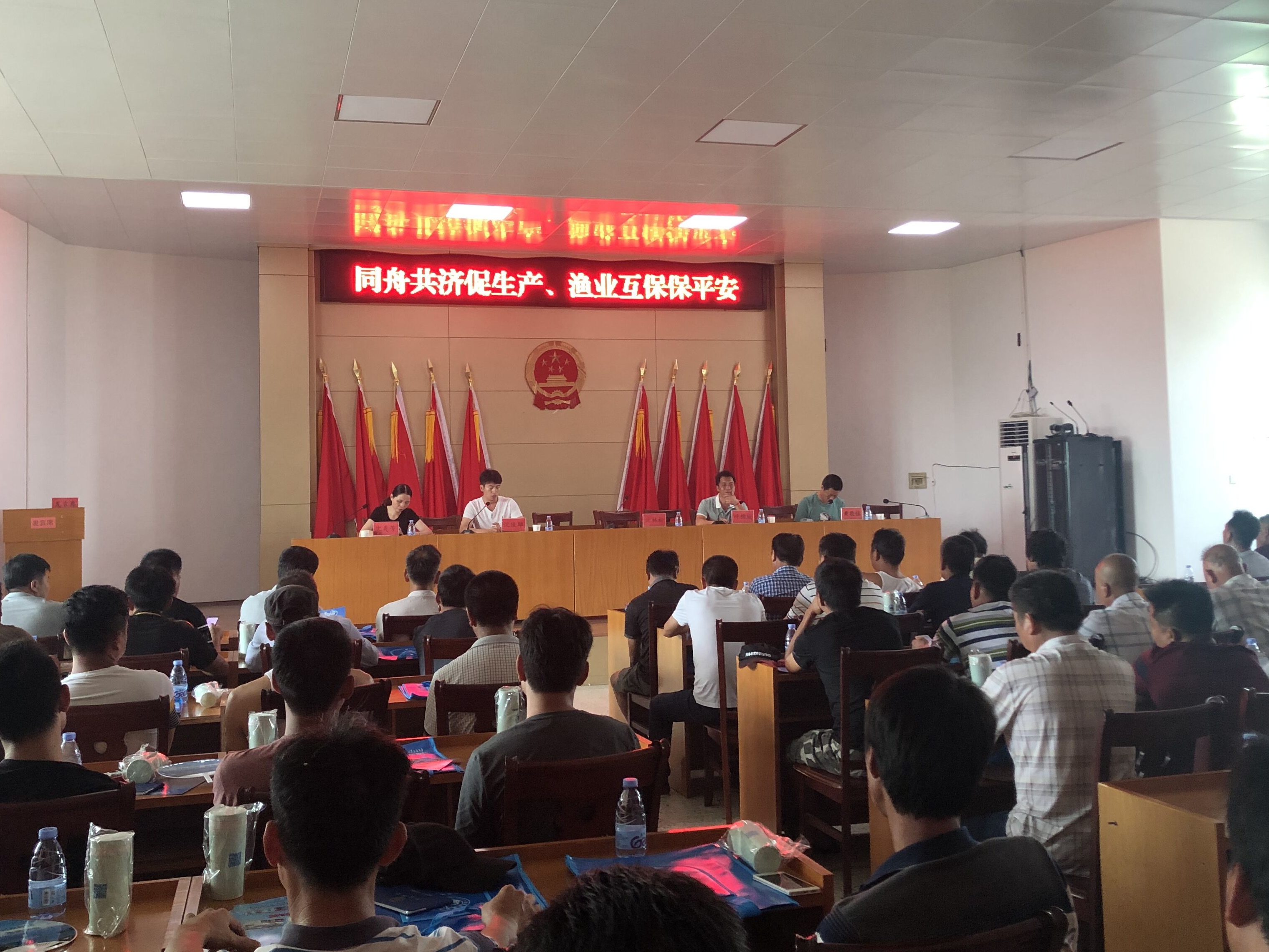 会议邀请了船员培训学校的老师为广大船东船长上课讲解海上安全生产和自救常识,渔业安全生产工作注意事项,特别是渔船防碰撞、防台风、防火灾等注意事项,要求船东船长要切实引起高度重视,抓好各项防范措施落实到位。