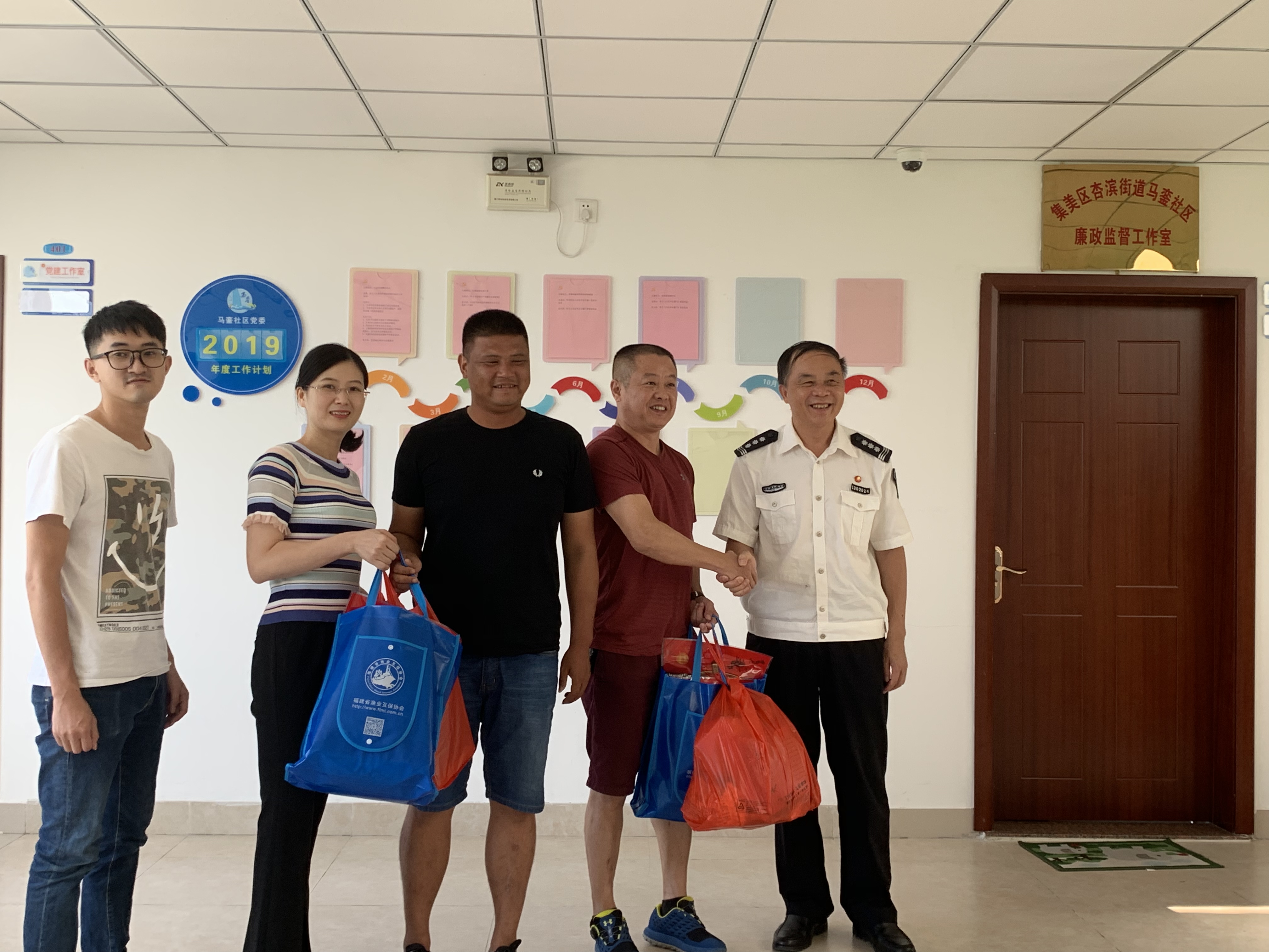 为感谢厦门辖区内的安全船管员在过去的工作中,对渔业互保的鼎力支持与热心帮助,9月16日至23日,厦门市办事处走访各渔村,开展“夏送清凉”慰问走访活动,为他们送上绿豆、莲子、银耳等消暑品,并叮嘱他们注意防暑。