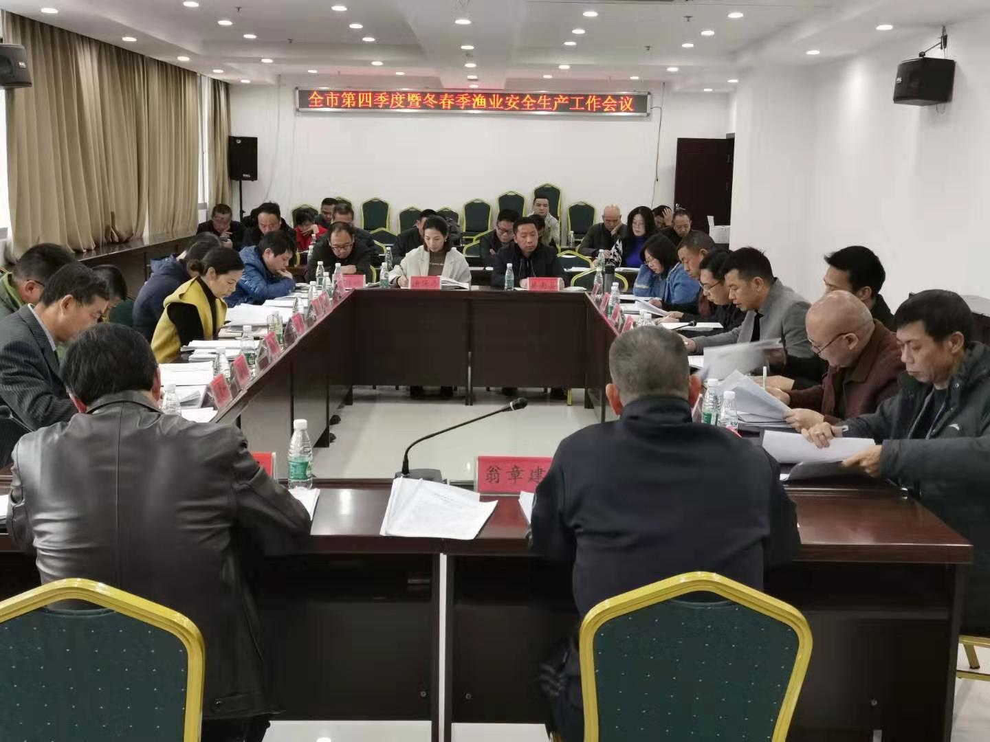 此次会议,是为了贯彻落实习近平总书记在中共中央政治局第十九次集体学习会上就应急管理体系和能力建设的重要批示指示精神,及贯彻落实农业农村部、省委省政府、市委市政府近期关于安全生产工作的会议精神及决策部署,加强冬春季渔业安全生产管理,落实目标责任,总结工作情况,分析当前形势,部署下阶段工作重点,保持全市渔业安全生产形势持续稳定向好。