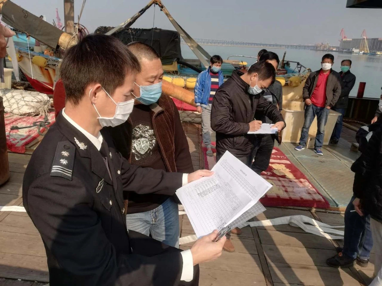 2月20日,厦门市渔港渔船管理处联合厦门市办事处对停靠高崎中心渔港的大中型渔业船舶,集中综合检查并统一组织消杀作业,厦门市办事处以此为契机对渔业企业、船东船长进行安全生产隐患排查、消防安全及疫情防控知识宣传。