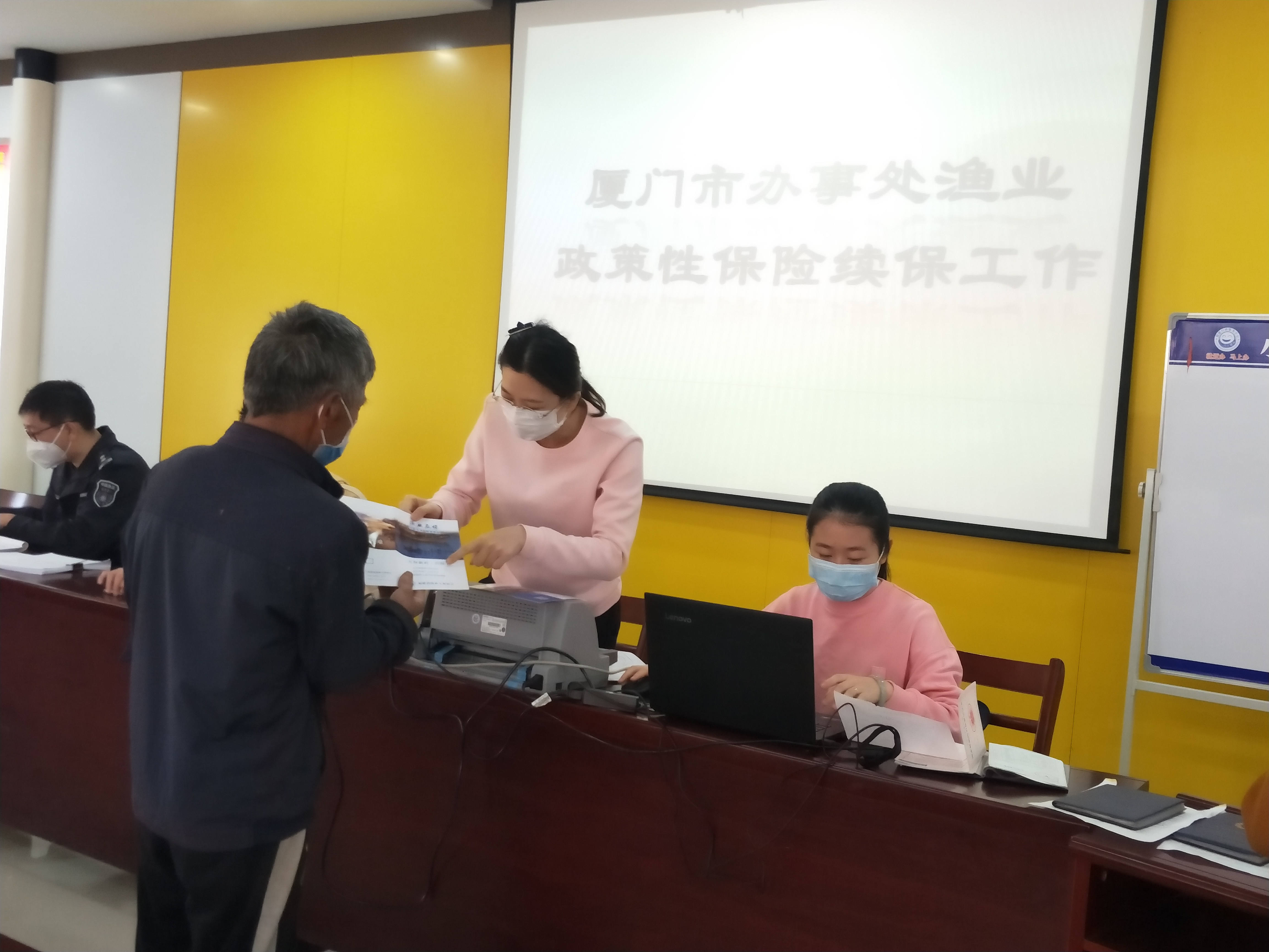 虽受疫情影响,厦门市办事处在抓好防控疫情的基础上,为渔区会员提供便捷服务。此次续保工作按“分区分时段预约有序办理”的原则开展,会员按预约时间错开时段到社区办证点办理渔工续保手续。