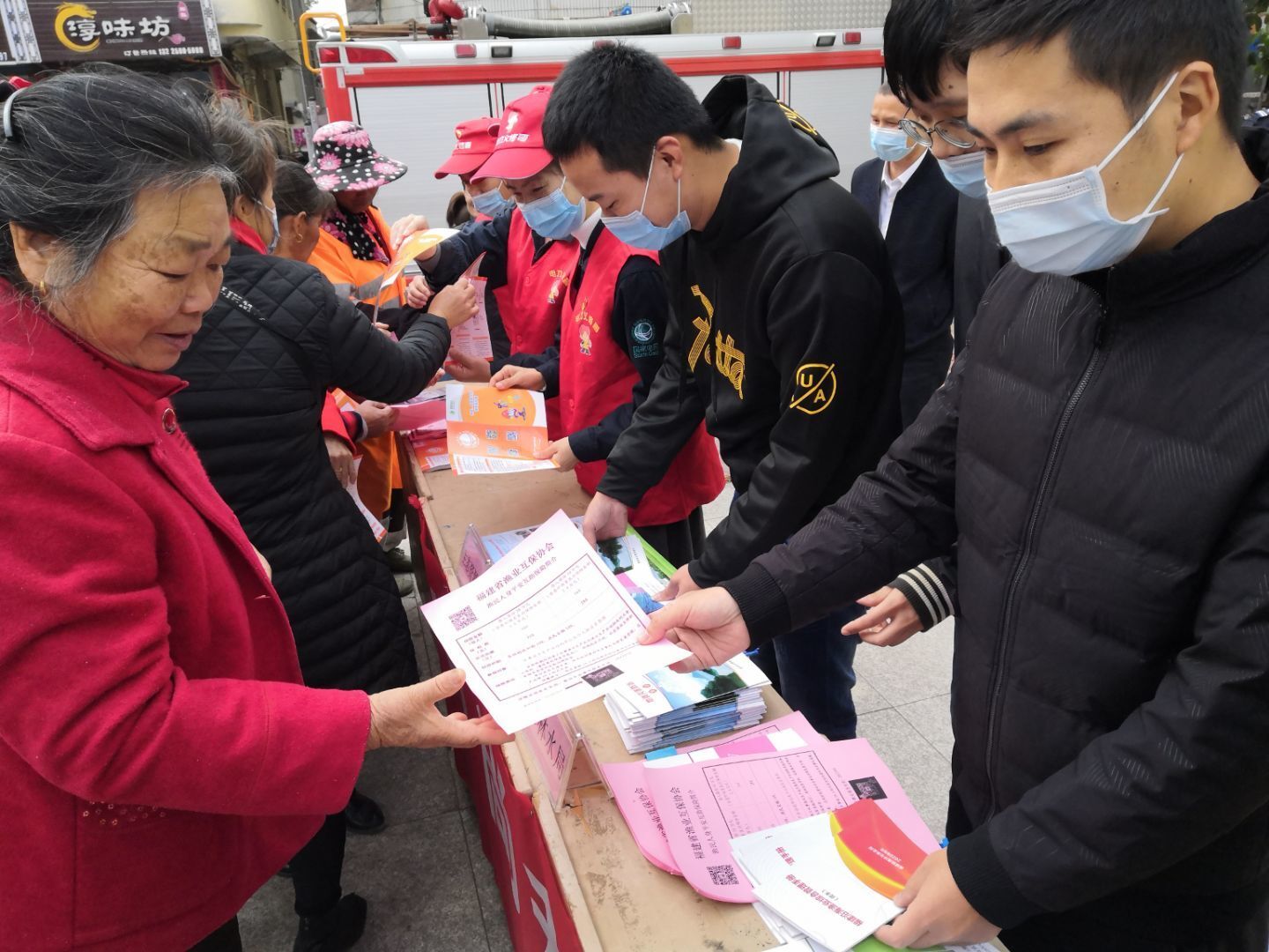 12月4日,福州市办事处在主管局的带领下于连江县黄岐镇开展主题宣传活动。活动中,工作人员向渔民群众免费发放《宪法》、《民法典》、《渔业法》及渔业互保宣传册等宣传材料1000多份,详细、耐心地解答了现场群众提出的有关新的渔业法、渔业互保新政策和理赔咨询等问题,进一步增强渔民群众的法制观念和依法办事的自觉性,教育引导渔民群众树立“尊法、学法、守法、用法”理念,提升渔区群众法治意识的同时也增强了渔民安全生产和保护海洋渔业资源的意识。