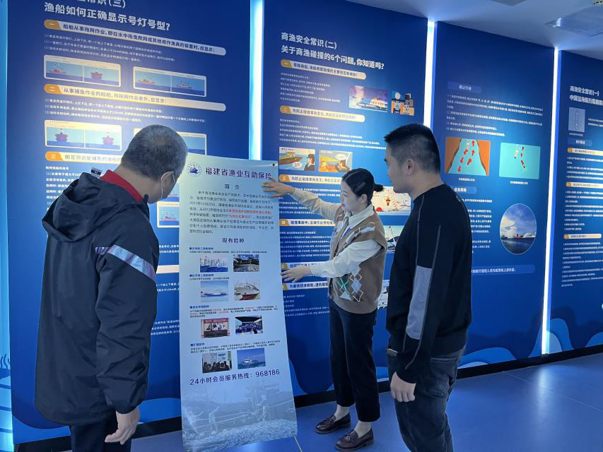 11月14日,石狮市办事处结合泉州海事局、泉州市海洋与渔业局在泉州海洋职业学院主办的“商渔共治”安全宣教活动进行渔业互保政策宣讲。