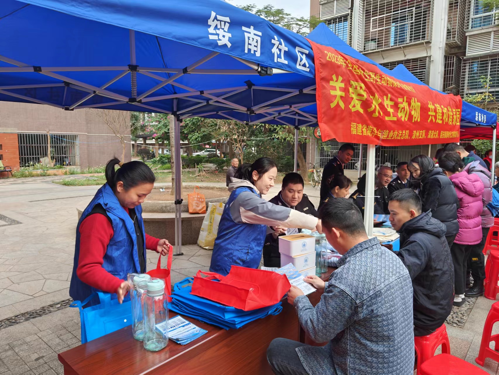12月21日,漳浦县办事处参加以“关爱水生动物 共建和谐家园”为主题的水生野生动物保护主题教育活动,开展渔业互保政策宣传。