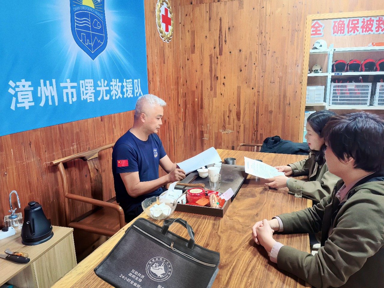 3月19日下午,漳州市办事处工作人员前往漳州市曙光救援队开展走访座谈。
