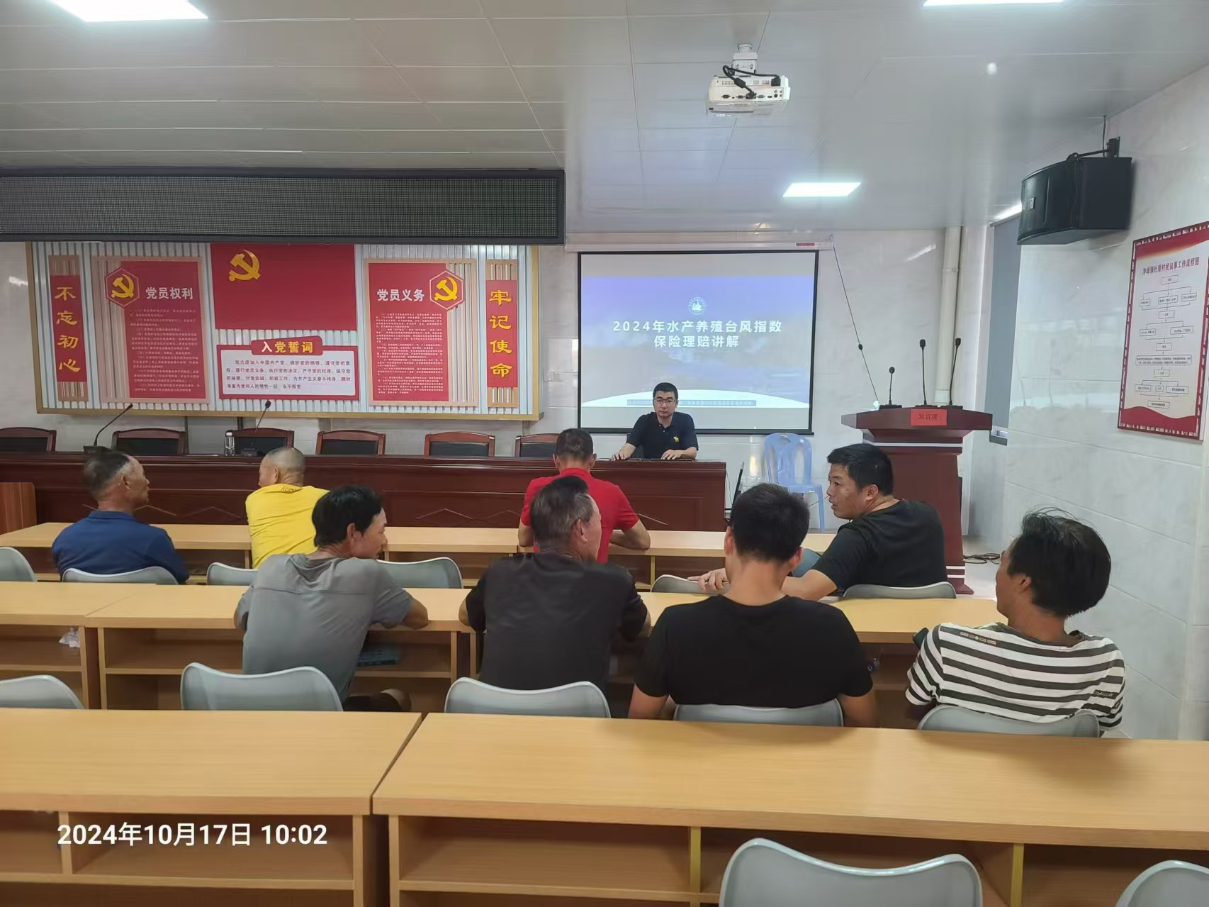 宣讲会上,工作人员从水产养殖台风指数险保障范围、保险责任、赔偿处理方式、气象观测站点选择等内容现场对养殖户进行详细介绍,使养殖户对水产养殖台风指数险有了进一步了解,并针对参会人员提出水产养殖台风指数险方案内容、理赔风力等级触发条件等问题进行解答。养殖户对水产养殖台风指数保险互保政策有了更全面的认识,并表示明年将根据生产投入情况继续参加水产养殖台风指数险。