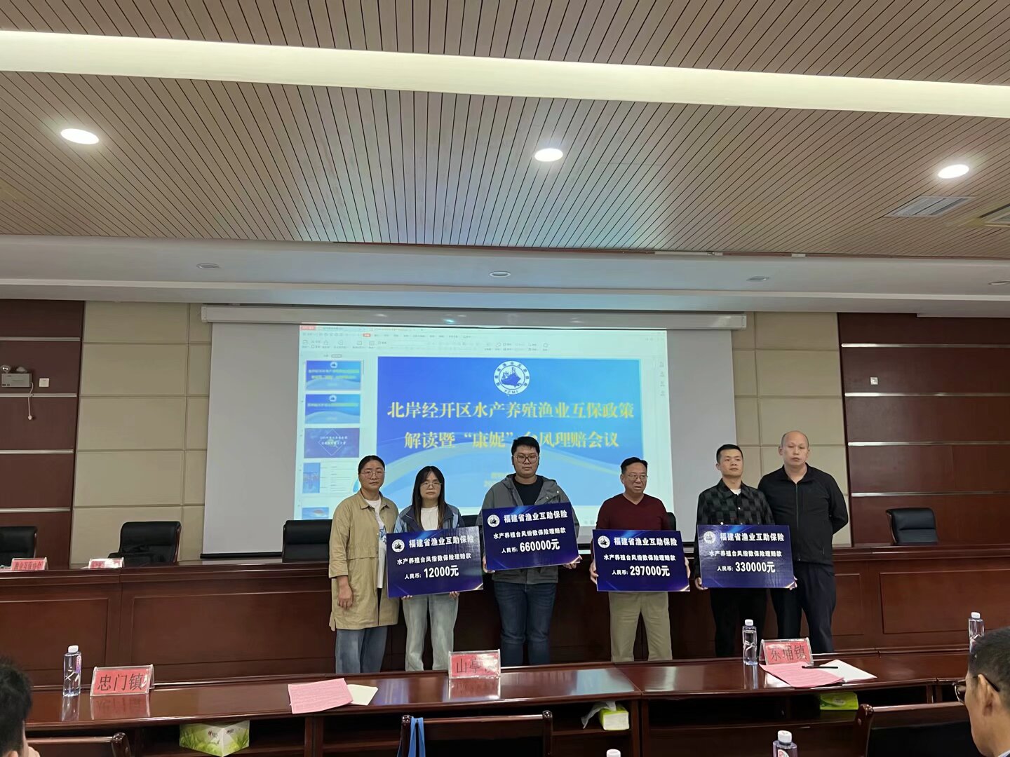 11月19日上午,莆田市办事处联合区海洋与渔业局在北岸召开渔业互助保险政策解读会暨“康妮”台风理赔会,渔业重点镇、村、养殖户代表参加会议。