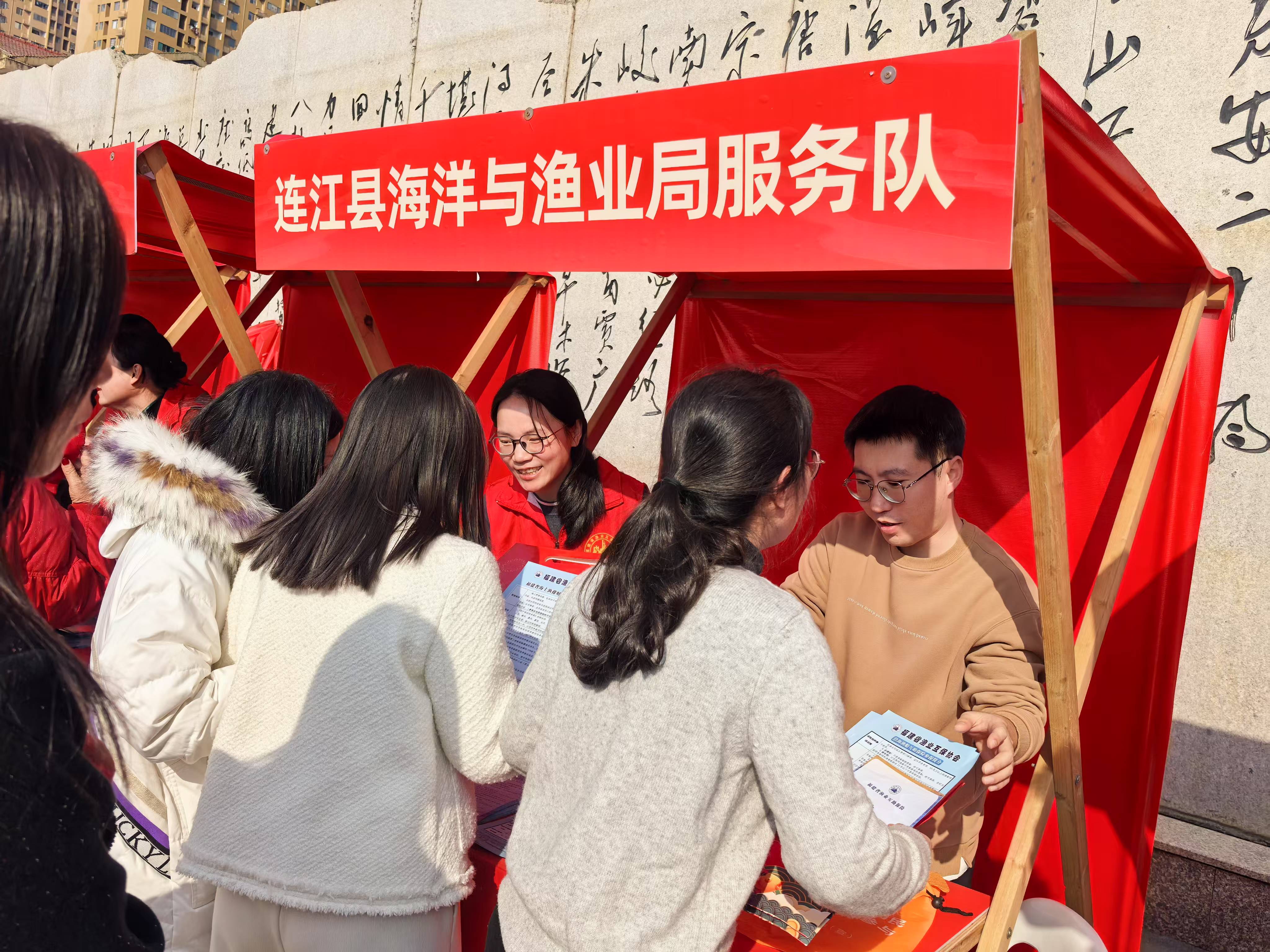 1月21日,连江县办事处参加在潘渡镇举行市文化科技卫生“三下乡”集中服务活动,开展渔业互保宣传。