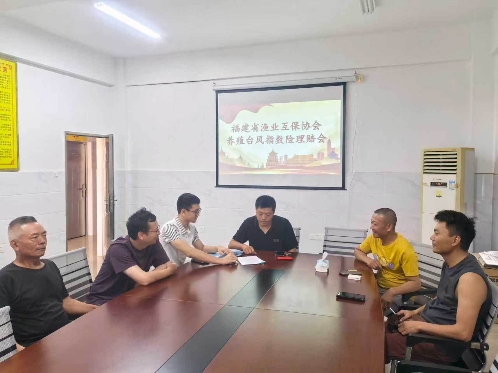 8月25日上午,惠安县办事处在净峰镇杜厝村党建+邻里中心组织部分养殖户召开水产养殖台风指数保险理赔会。