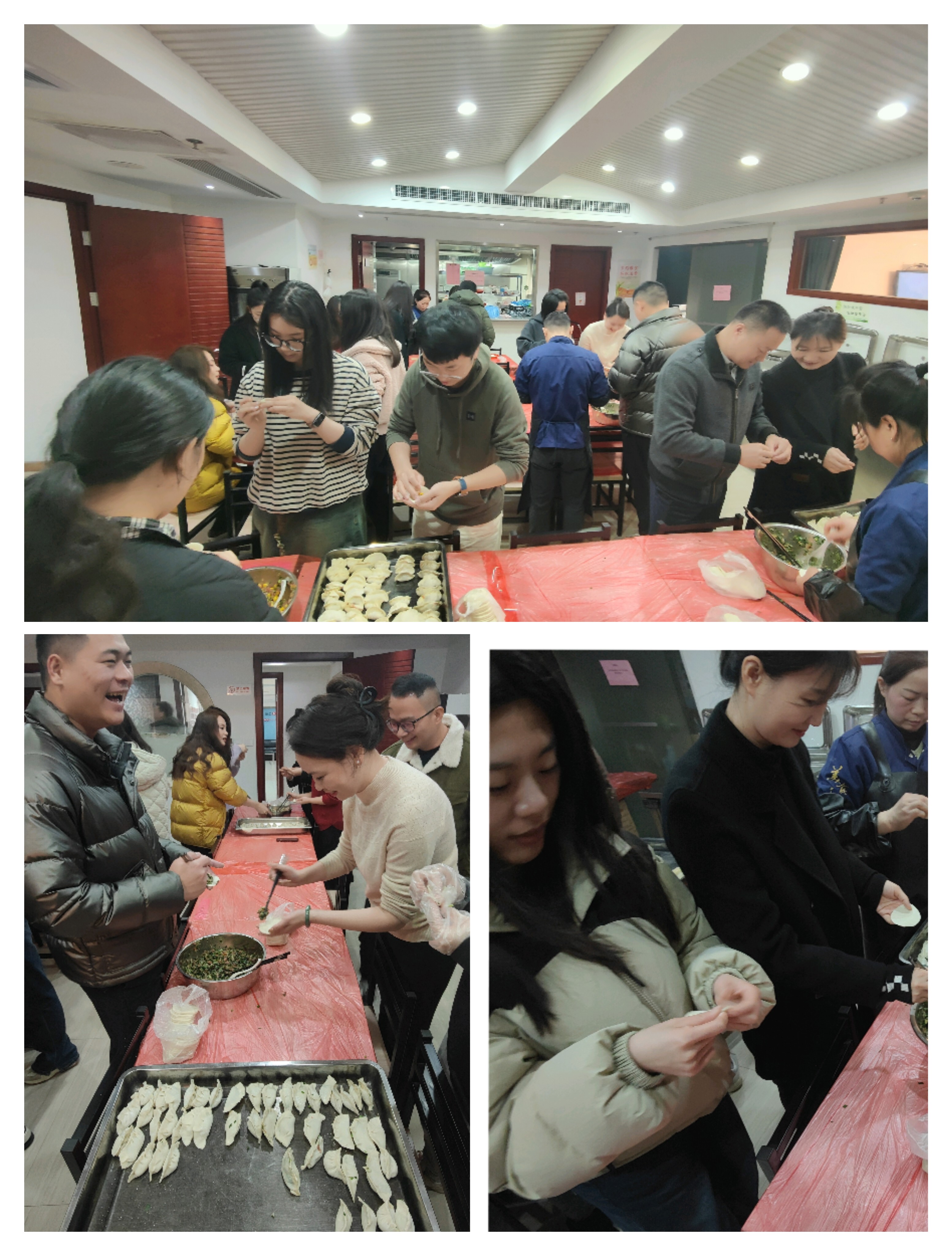 随着饺子的下锅,食堂里弥漫着饺子特有的香气,整个空间都充满了温暖和喜庆。当热气腾腾的饺子端上餐桌,员工们围坐一起,品尝着自己亲手制作的饺子,脸上都洋溢着满足和幸福的笑容。