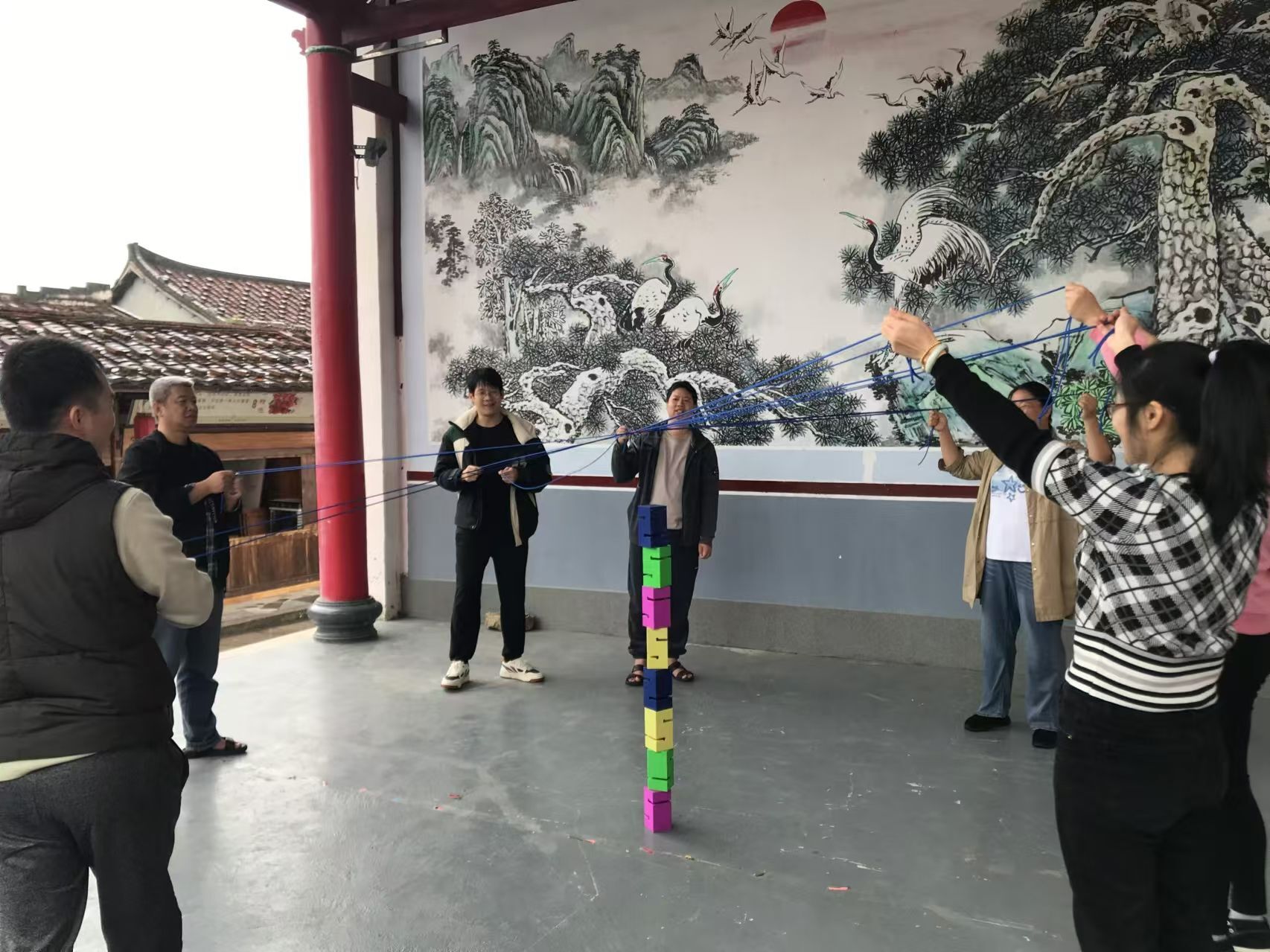 在濛濛细雨中,工会员工穿梭在田间小道,参观学习全省首家党员政治生活馆——荔城区党员政治生活馆;积极参与珠行万里、步步高升等拓展游戏;亲手体验非遗项目“做红团”等活动。