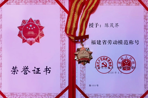 4月27日,“五一”国际劳动节来临之际,省委、省政府在福建会堂隆重举行大会,表彰全省各条战线劳动模范和先进工作者,我会常务理事陈茂界被省委、省政府授予“福建省劳动模范”荣誉称号,受到隆重表彰。