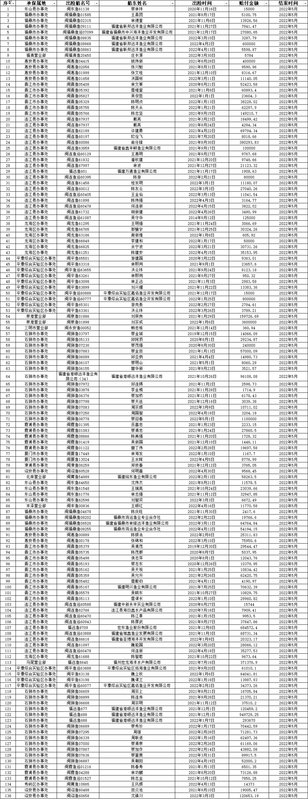 2022年5月赔案