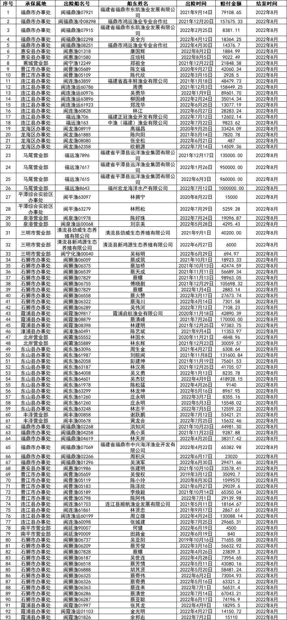 2022年8月赔案