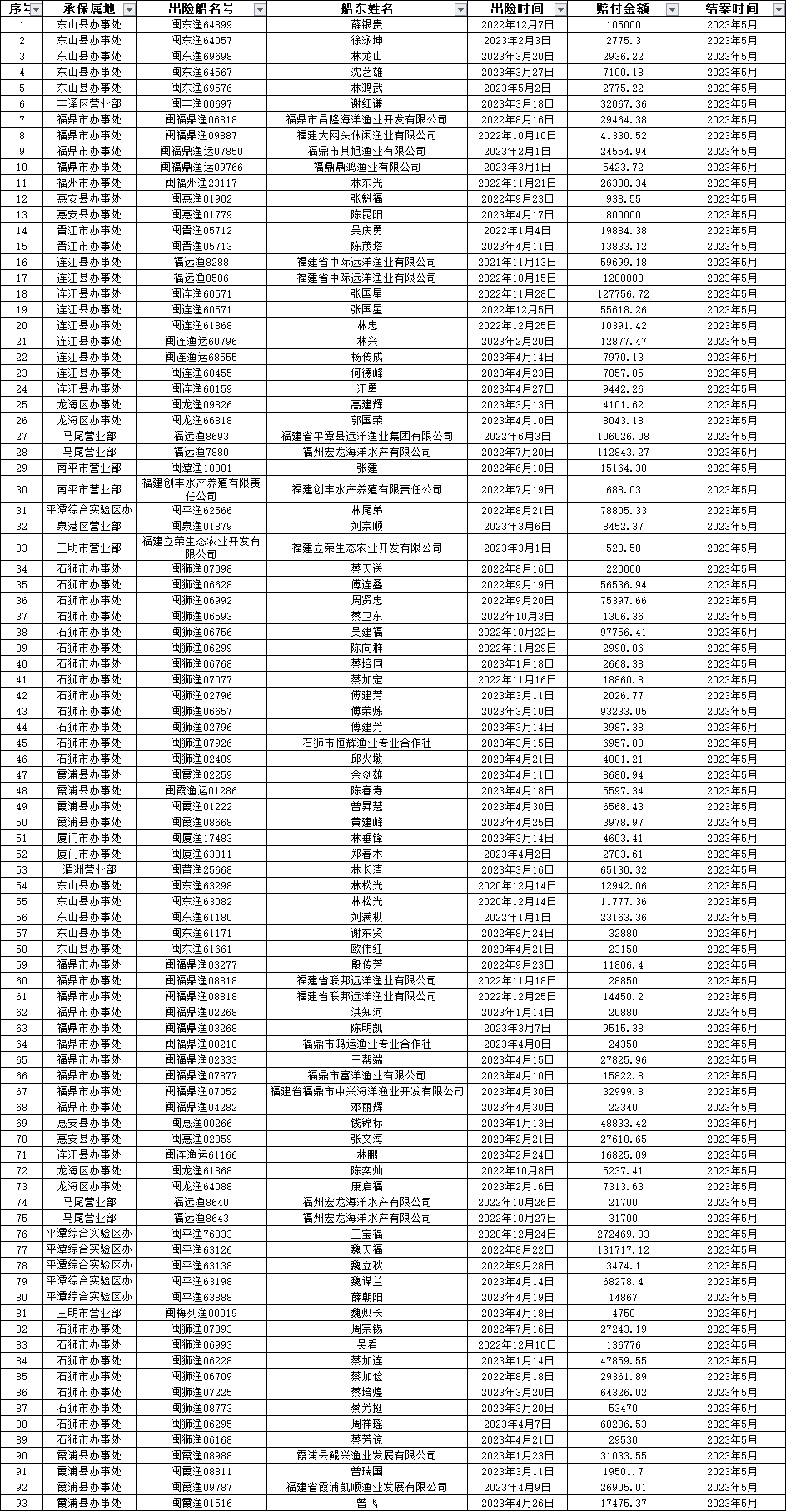2023年5月赔案