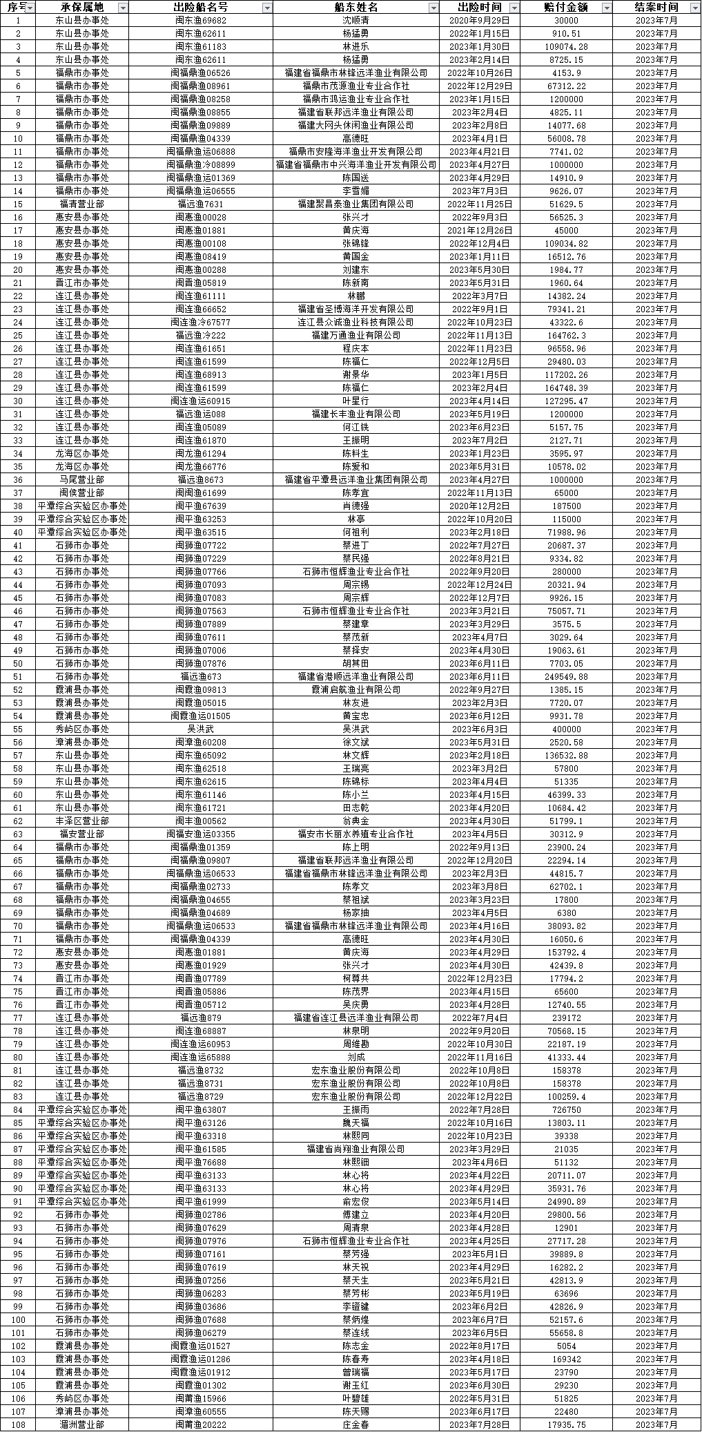 2023年7月赔案