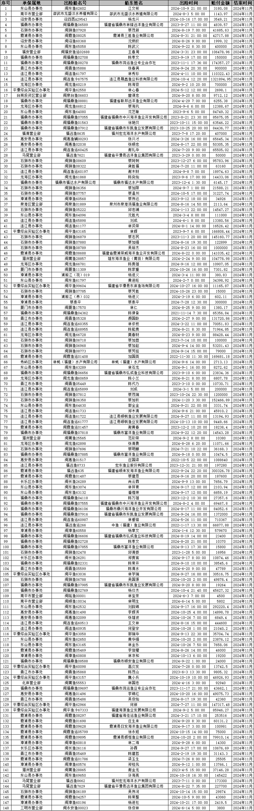 2024年11月赔案