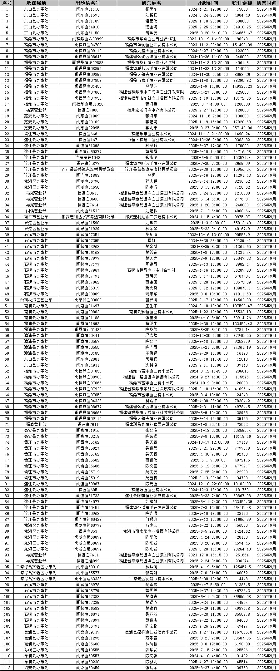 2025年9月赔案