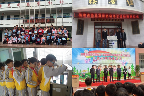为践行福建省渔业互保协会“渔民之家,会员之家”的办会理念,福建省渔业互保协会发起了“共同托起明天的太阳”爱心公益活动,从2016年12月至2017年3月,向连江县黄岐中心小学、惠安县大祚小学、晋江市深沪中心小学、石狮市祥芝中心小学等九个中心渔港的九所中心小学赠送可以过滤加热自来水的专业净水设备。