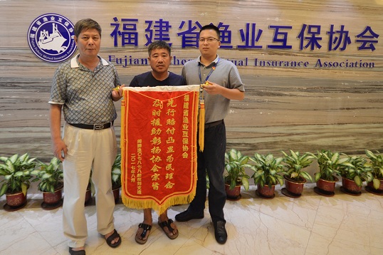 2017年8月11日下午17时许,福建省渔业互保协会会员刘文造将一面“先行赔付凸显为民理念,及时援助彰扬协会宗旨”的锦旗送到了省协会秘书处,再三感谢了我会在本次“闽狮渔07878”海难事故中提供的专业服务和热心帮助。