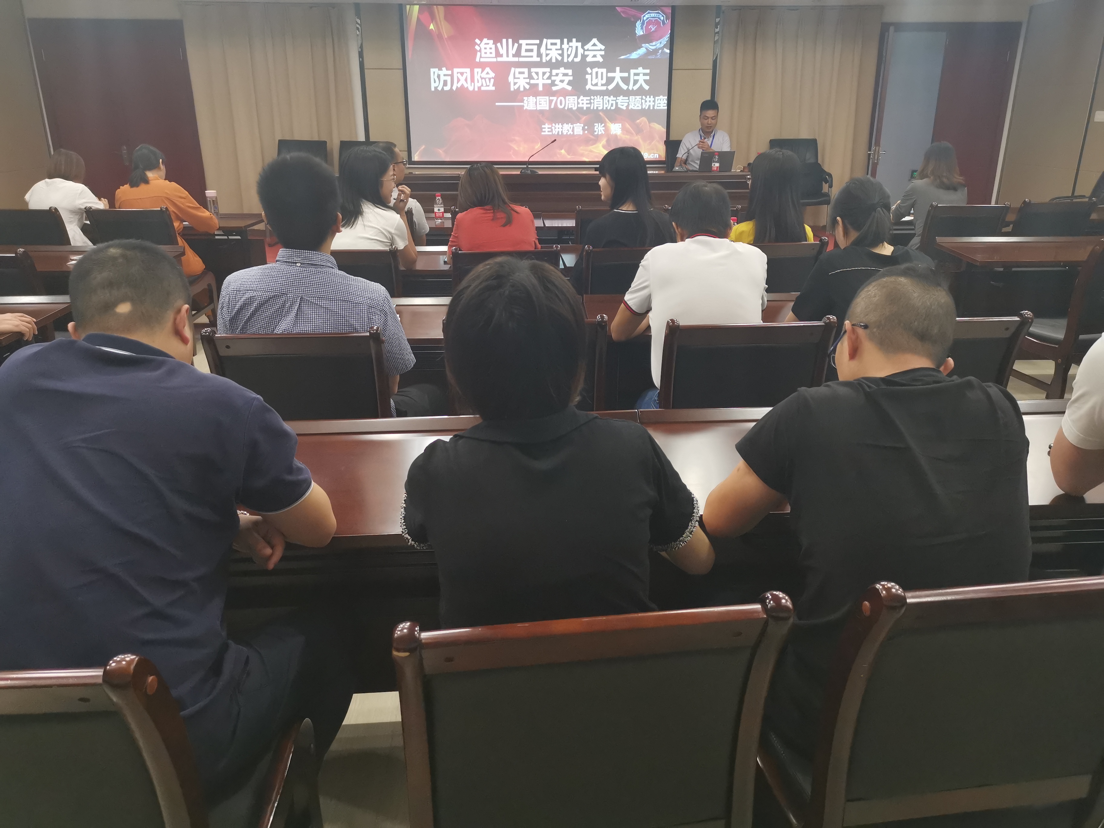 会后,省协会邀请福州消安防火中心张教官为全体人员开展《防风险、保平安、迎大庆》——建国70周年消防专题讲座,教官联系实际,详细讲解了火灾的危害、逃生自救的方法、消防器材的使用等消防安全知识,介绍了常规消防设施的使用,现场演示了灭火器的正确使用方法。通过本次讲座,提高了全体人员消防安全意识,为创建平安协会具有积极意义。
