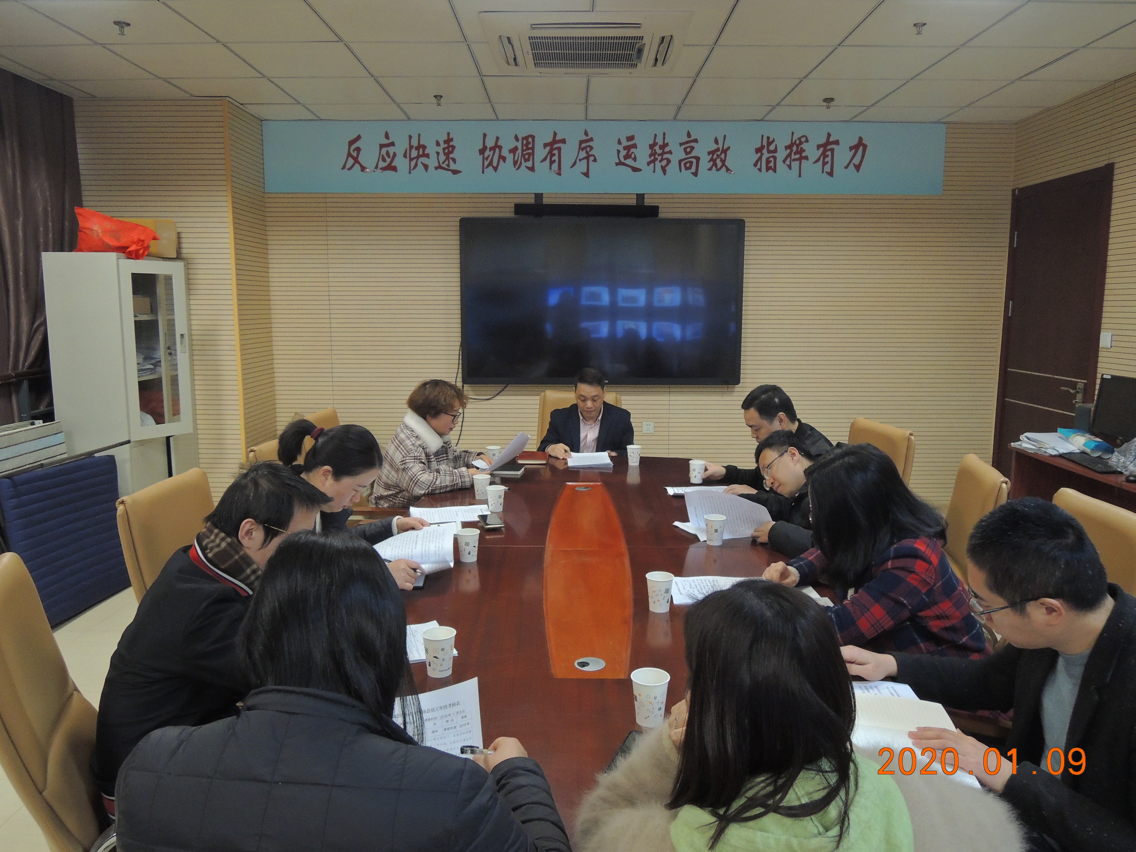 1月9日,福州市办事处组织召开2019年度员工年终考核会议,办事处(营业部)全体工作人员参加了会议。