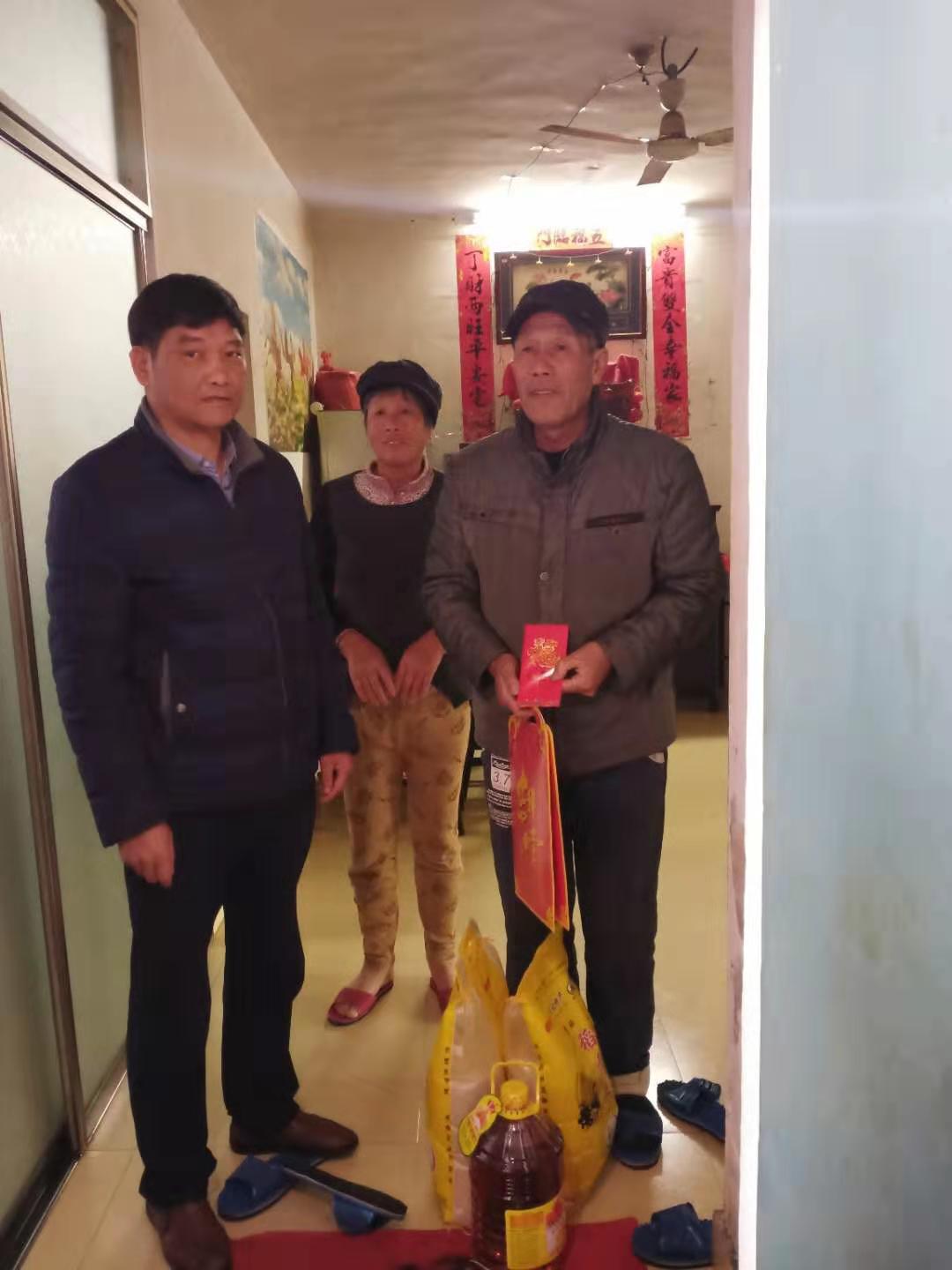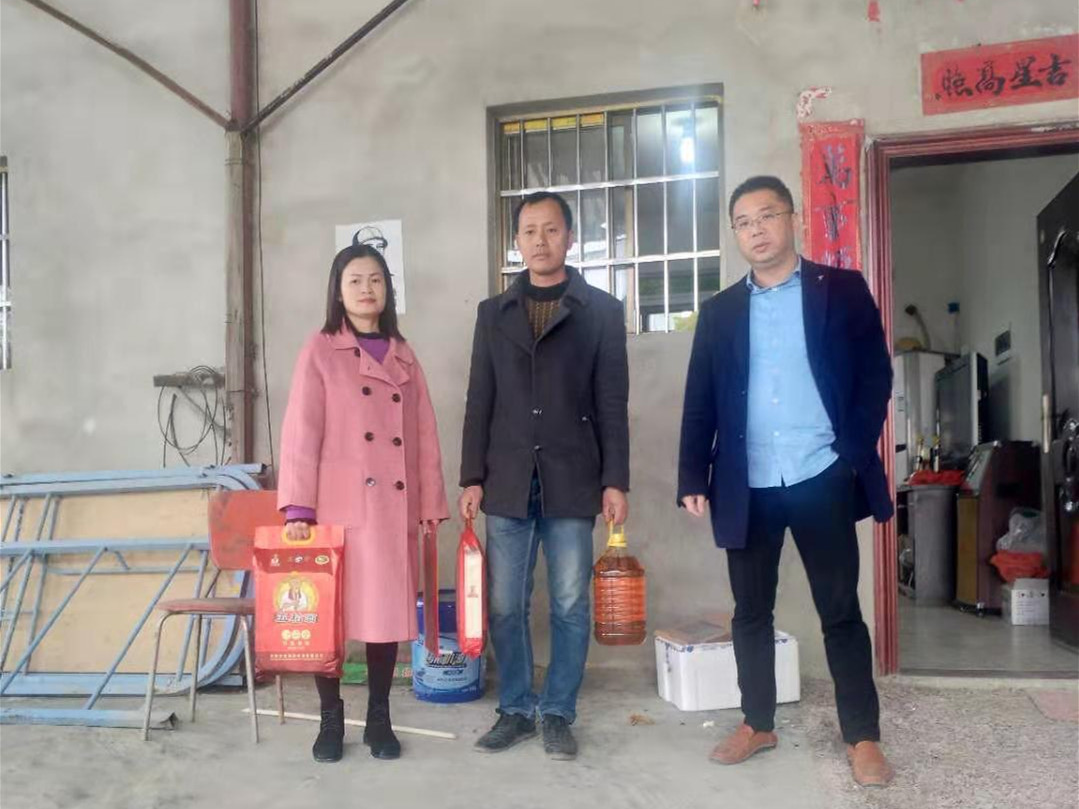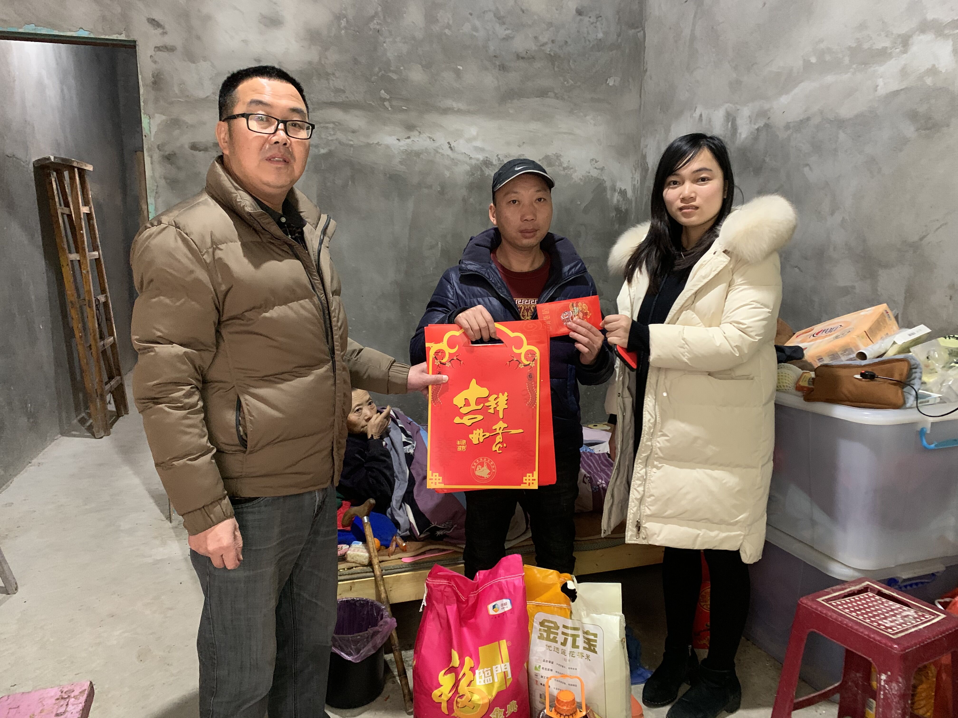 慰问组为两户因疾、因灾贫困家庭送去慰问金及米、面、油等生活物资,江辉副秘书长关切地询问了他们近期的生产生活情况,鼓励他们积极面对困难,树立生活信心,并为他们送上诚挚的新春祝福。