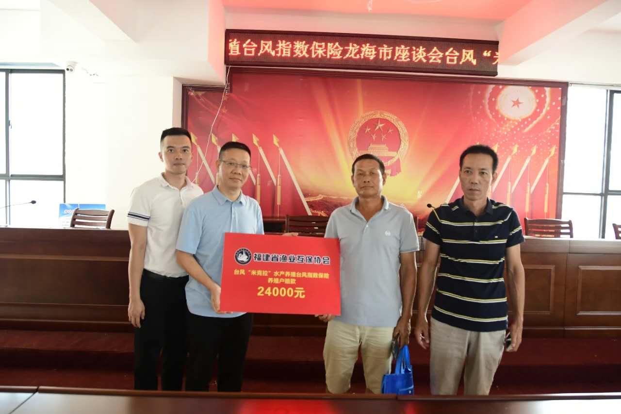协会副秘书长(主持工作)黄金水在会上详细介绍了协会的性质和诏安本次台风的赔付情况。诏安县海洋与渔业局沈林松局长在会议上做了重要讲话,并对省协会的这次台风的快速理赔给予高度的赞扬。会上,获赔的养殖户纷纷对此次台风的快速理赔服务表示满意。据统计,诏安县共有27户养殖户得到理赔,共计赔付金额245.36万元。