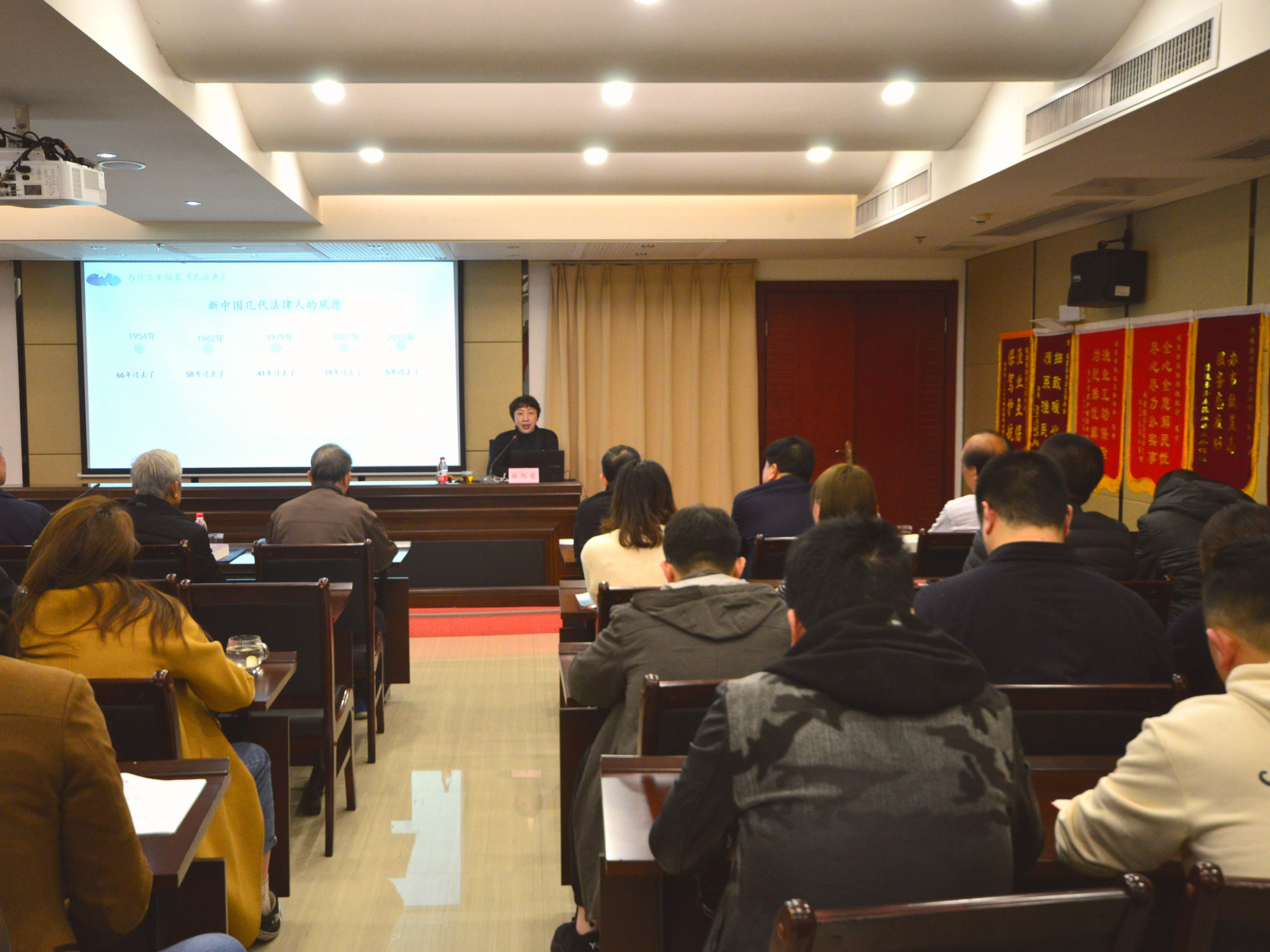 1月22日下午,为大力弘扬法治精神,增强员工的法律意识,省渔业互保协会举办了 “传承红色基因 弘扬法治精神”为主题的《民法典》宣讲会,邀请了福建师范大学法学院林旭霞教授开展《民法典》法律专题宣讲。省渔业互保协会第一书记叶建平、理事长林光纪、监事长卢振忠参加了会议。会议由协会副理事长、支部书记王以诚主持,还特别邀请了局机关离退休干部党支部的老党员们同我们一起学习《民法典》。