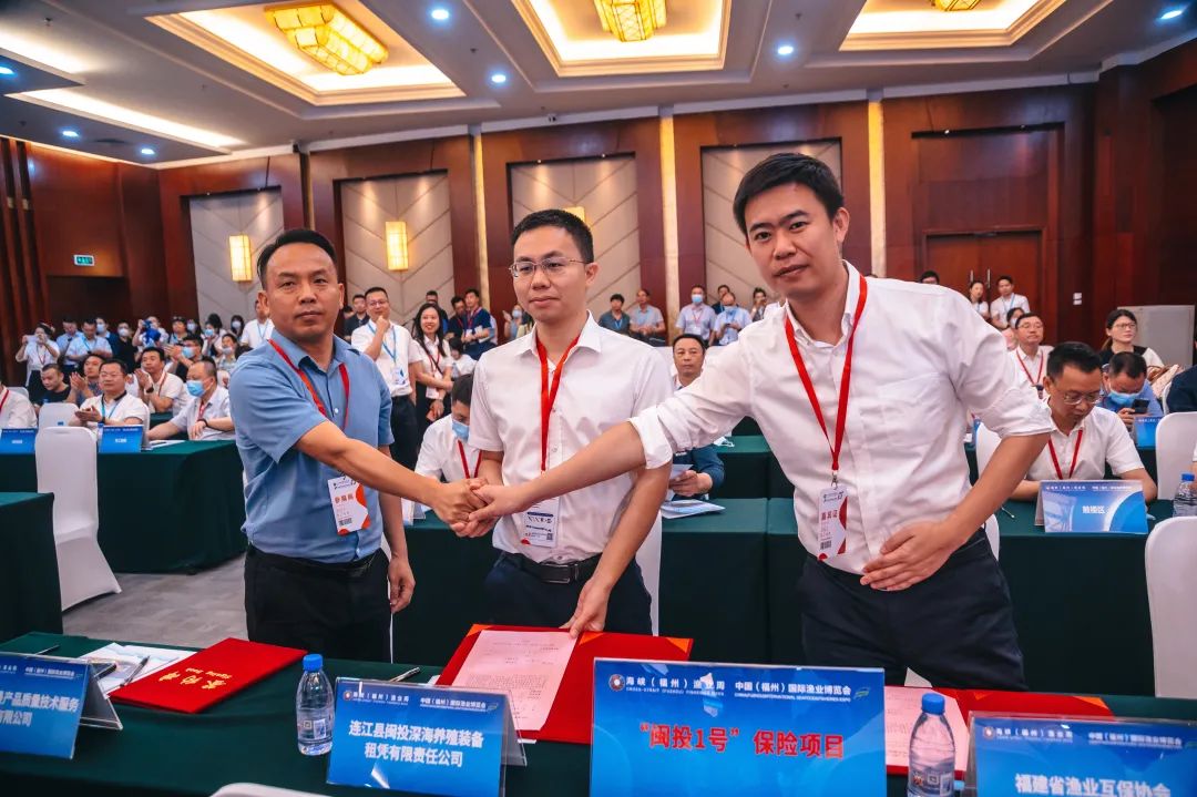 6月2日,海洋与渔业重点项目和首批福州市海洋科创高地“揭榜挂帅”项目签约仪式于福州举行。期间,福建省渔业互保协会与连江县闽投深海养殖装备租赁有限责任公司、福州汉斯曼产品质量技术服务有限公司就“闽投1号”签订装备及人员保险项目的合作协议。