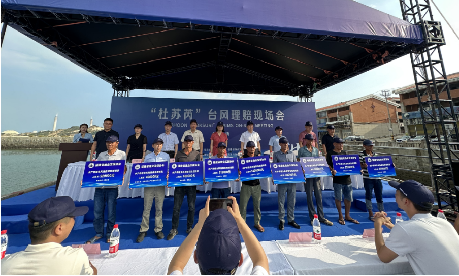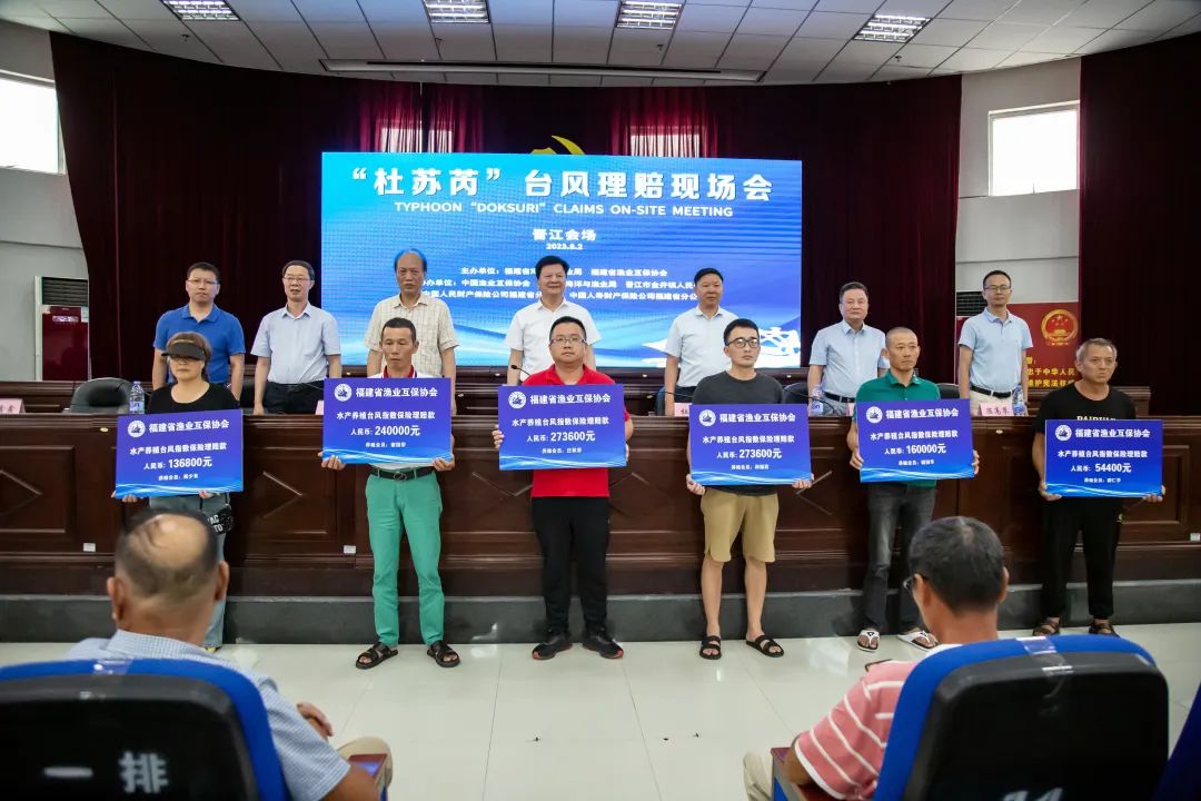 8月2日,福建省渔业互保协会在晋江、龙海召开“杜苏芮”台风理赔现场会,向惠安、泉港、晋江、龙海等地参保台风指数保险的58户养殖户支付理赔金额1829.28万元,为当地养殖户灾后快速恢复生产提供了有力保障。本次活动由福建省海洋与渔业局和福建省渔业互保协会共同主办,现场邀请多家媒体进行报道。省局党组成员、副局长、一级巡视员林月玲、协会第一书记叶建平出席会议并讲话。