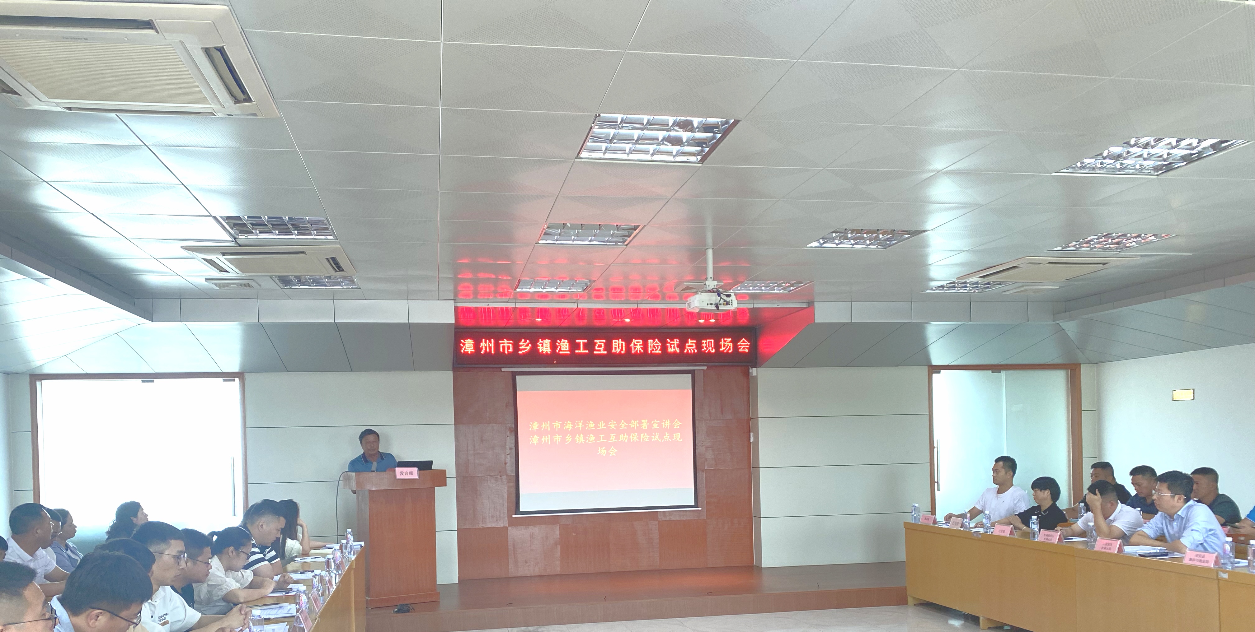 漳州市各县(区)渔业行政主管部门分管领导、重点渔业乡镇(村)代表、乡镇船舶渔民代表、协会有关部门及漳州市各互保机构有关人员参加会议。