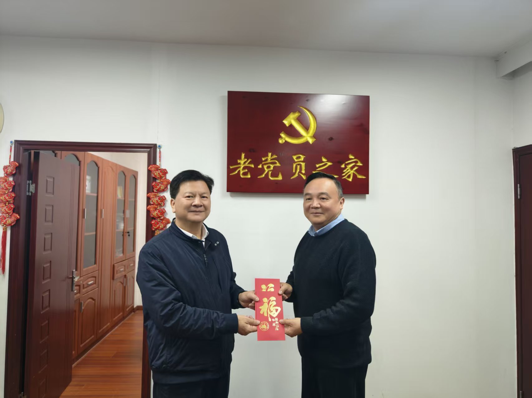 叶建平会长特别关注生活困难的离退休党员,将慰问金交予省海洋与渔业局机关离退休干部党支部书记李钢生代转,并致以新年问候。李钢生代表全体老干部感谢协会关怀,并表示会继续关注渔业事业发展、发挥余热。