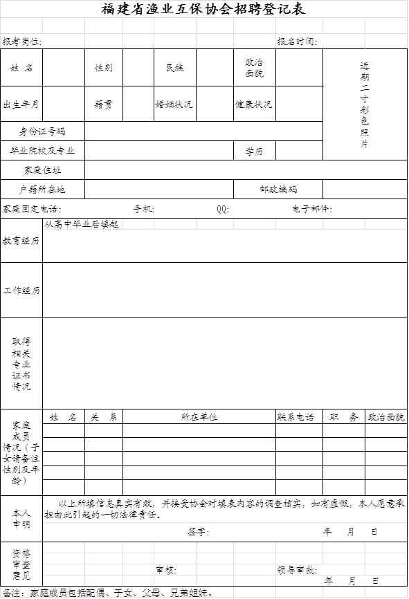 附件:福建省渔业互保协会招聘登记表