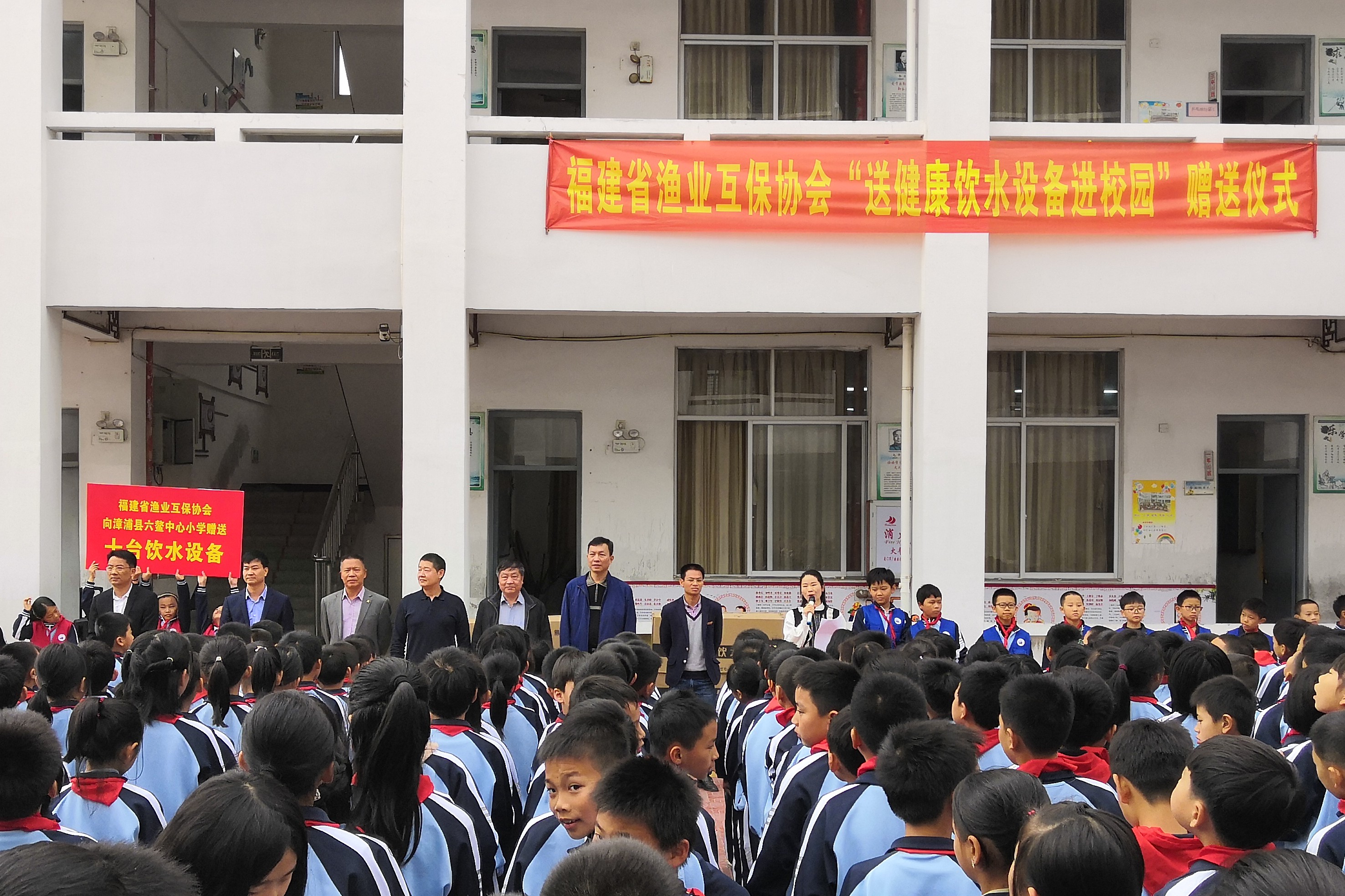 12月17日上午,福建省渔业互保协会监事会主席卢振忠、漳州市海洋与渔业局副局长周宽哲、漳浦县海洋与渔业局副局长陈建榴等一行来到漳浦县六鳌镇虎头山一级渔港所在地六鳌中心小学开展2019年渔业互保反哺渔区活动--送健康饮用水设备进校园公益活动,此次活动共1300多人参加。