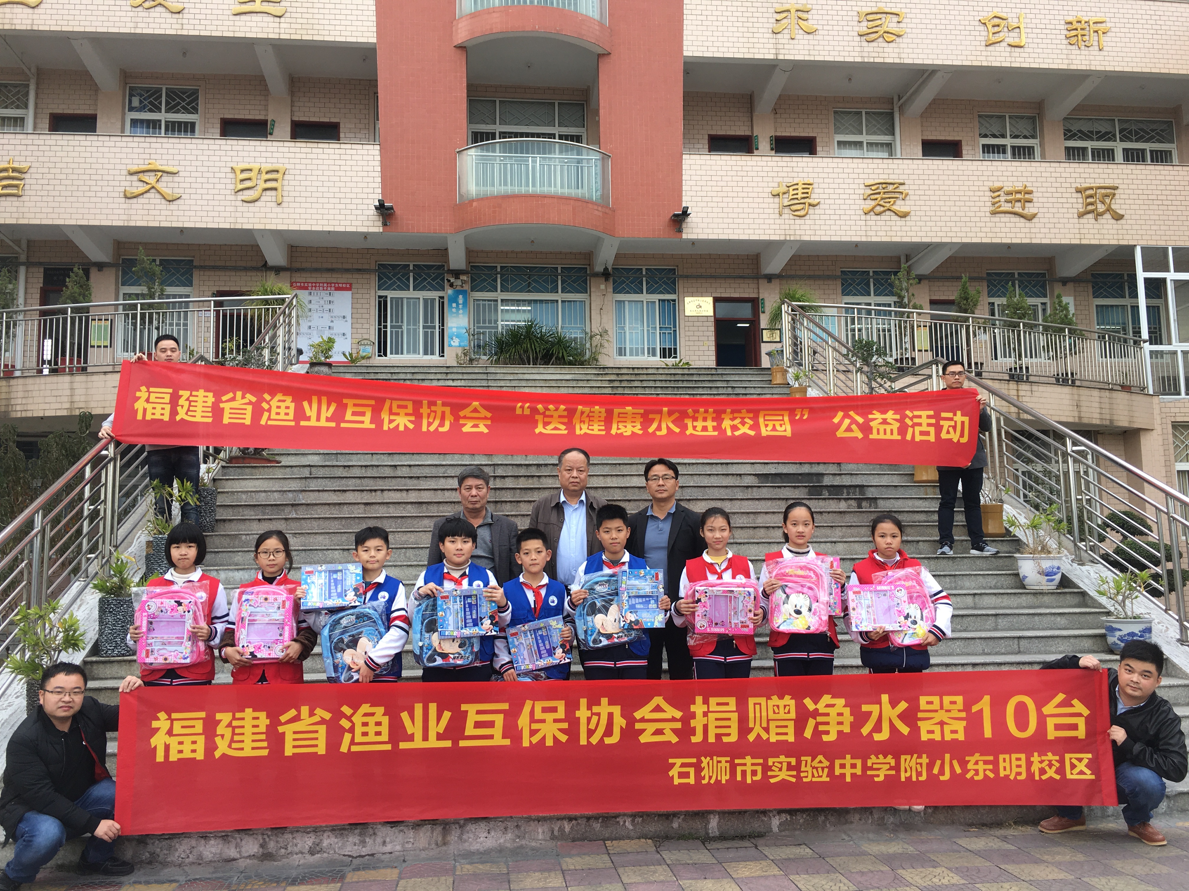 为了有效的避免了沿海渔村饮用水盐碱含量过高、不适合孩子饮用的情况,12月25日,省渔业互保协会泉州市办事处、石狮市办事处为石狮市实验中学附小东明校区和梅林小学捐赠14台净水设备,用于改善学校师生饮水条件。