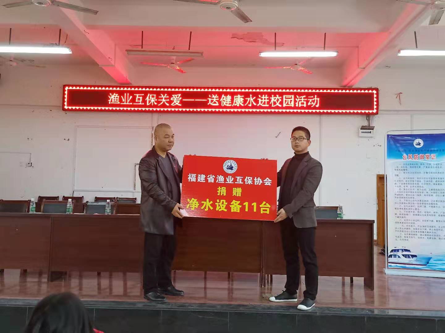 此次活动为秀屿区平海镇平海中心小学捐赠净水器7台。我办工作人员为学子们介绍:福建省渔业互保协会作为政府批准、财政补贴的渔业互助保险承办机构,为渔区开展渔工、渔船、水产养殖台风指数保险,为渔区缓解了大量灾后恢复生产的资金困难。本着“取之于民、用之于民”的服务完旨,了解到我们渔区自然水资源存在盐碱过高、磷超标等问题,为保护好渔区学子的身体健康,决定向平海镇平海中心小学捐赠7台净水器,表达渔业互保对渔区的关爱之情。