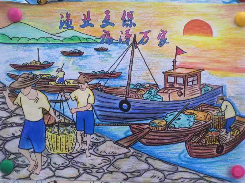 活动期间省渔业互保协会联合学校组织学生开展了以“海洋、船舶、渔民”为主题的绘画活动,并在校内进行海洋渔业知识的学习和科普。通过活动关心渔区,关爱渔民子女,唤起学生的水资源保护和渔区防灾减损的意识。