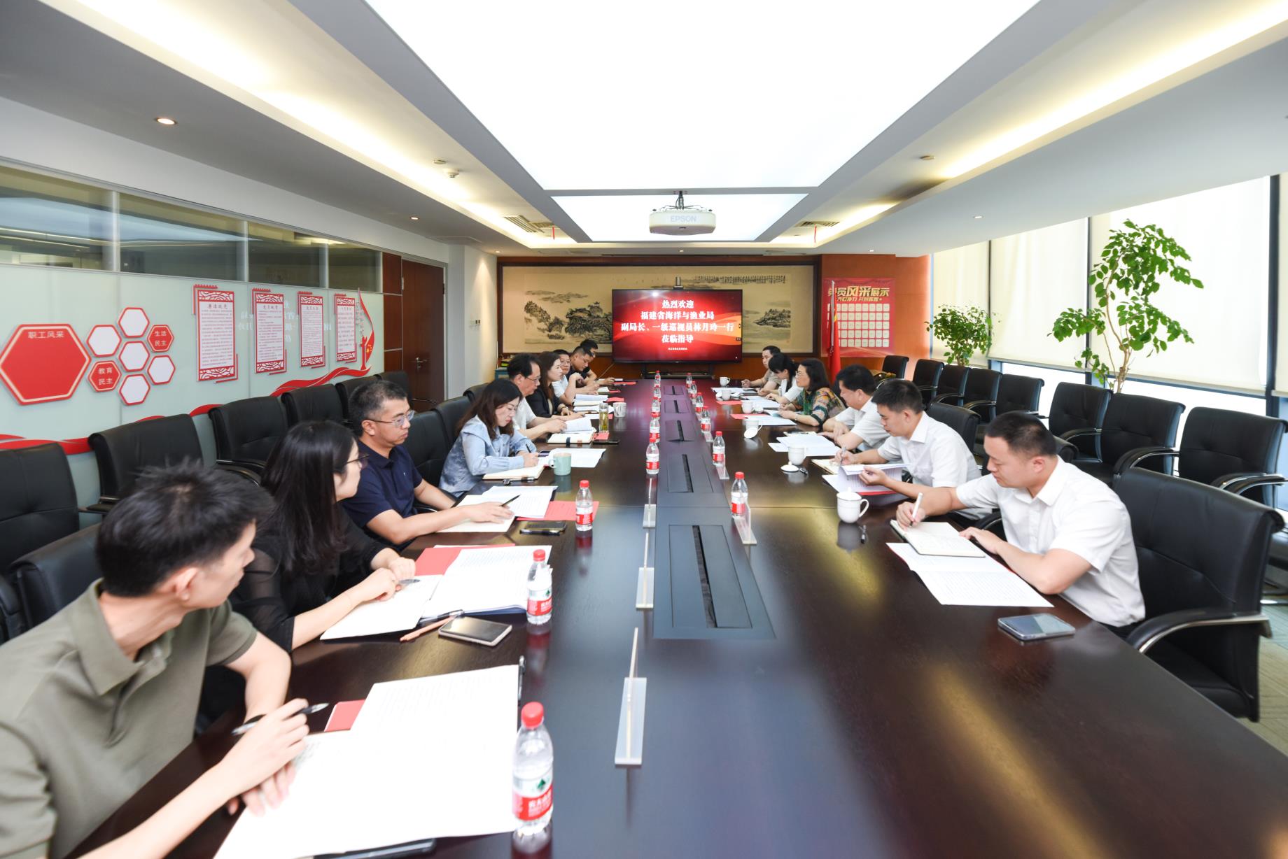 调研组一行与浙江省农业农村厅党组成员、副厅长、浙江省渔业互保协会理事长杨大海、秘书长谢加洪等同志座谈交流,双方就浙江省渔业保险开展情况、地方支持政策、改制发展方向以及渔业主管部门如何发挥行业指导职能作用,协调政府部门、渔保协会、渔业互助保险社三者间关系等方面进行了深入的交流和探讨。